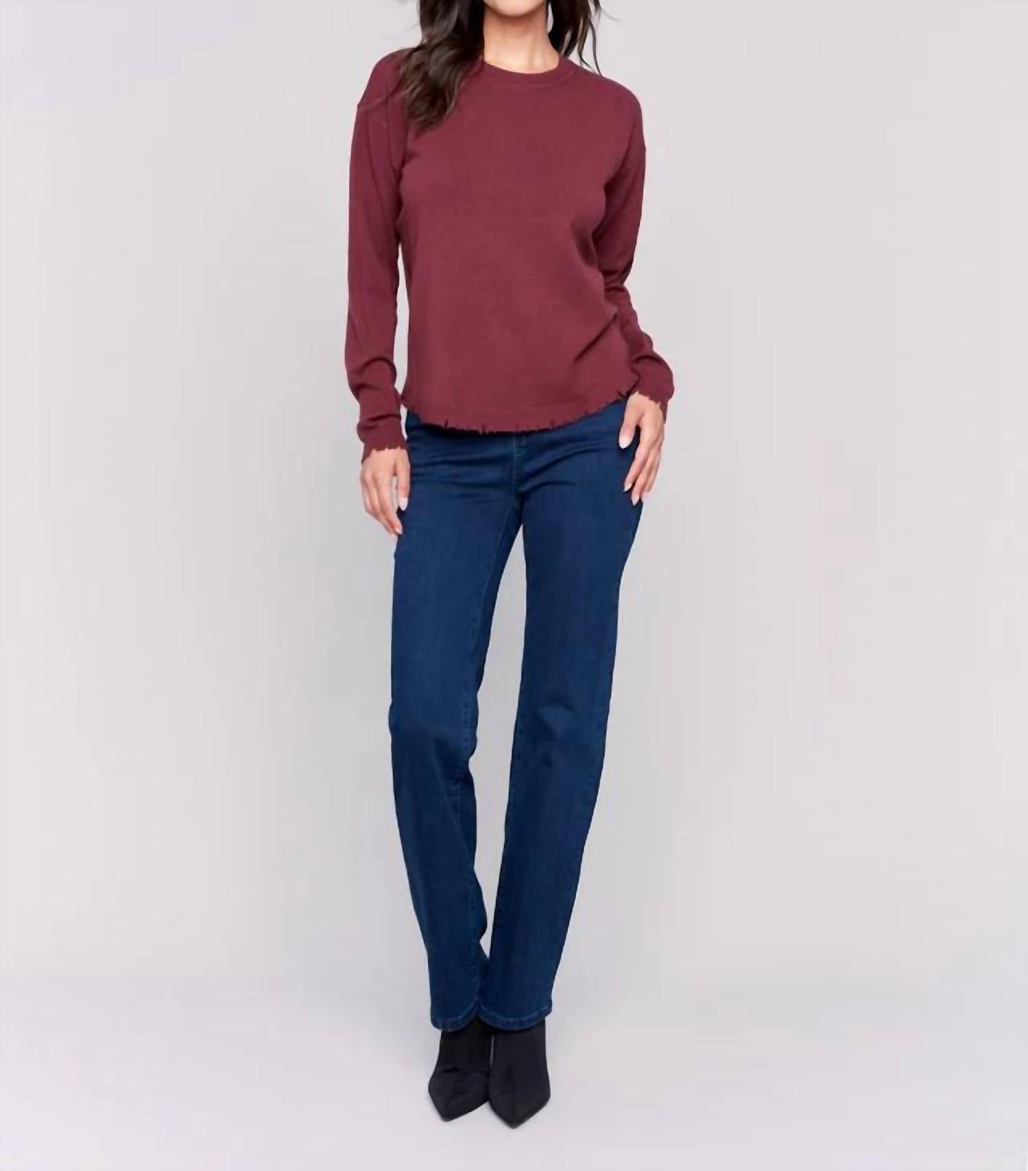 Elevate your casual wardrobe with this stunning Frayed Edge Round Hem Sweater! The crew neck and long sleeves give it a classic look, while the rounded ripped hem adds a unique touch of edge. Made with a blend of premium fabrics that ensure softness, durability, and a bit of stretch, this sweater is your new go-to for effortless style and comfort this fall.