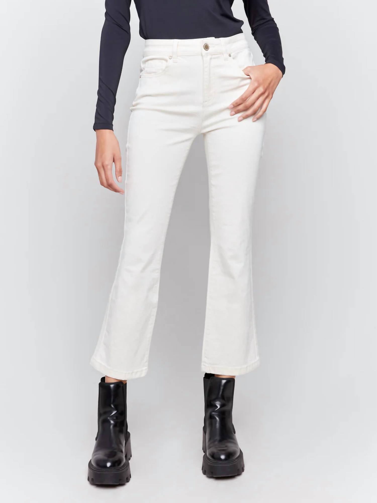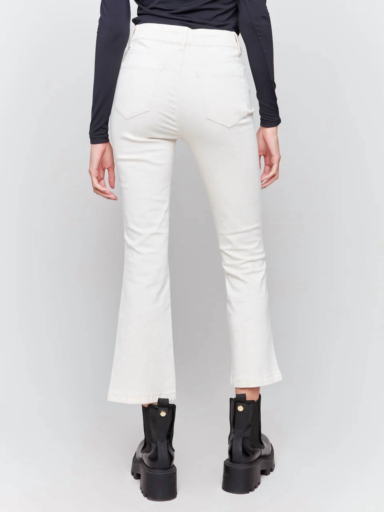 If you're looking for boot-cut, this is the jean for you. Introducing the Bootcut Leg Jean by CHARLIE B, a stylish piece in a natural color perfect for versatile wear. Designed with a mid-rise waist and classic bootcut leg, these jeans provide comfort and a trendy fit, featuring five functional pockets. Made from a stretchy twill blend of 98% Cotton and 2% Spandex, they ensure ease of movement. Closure: Button closure. Care: Machine wash in cold water, line dry, and iron at a low setting if needed; avoid bleach.