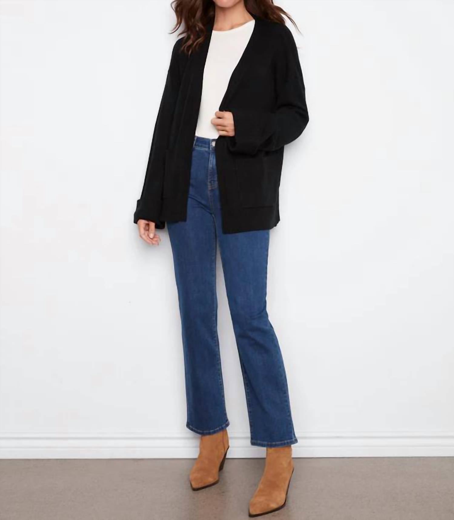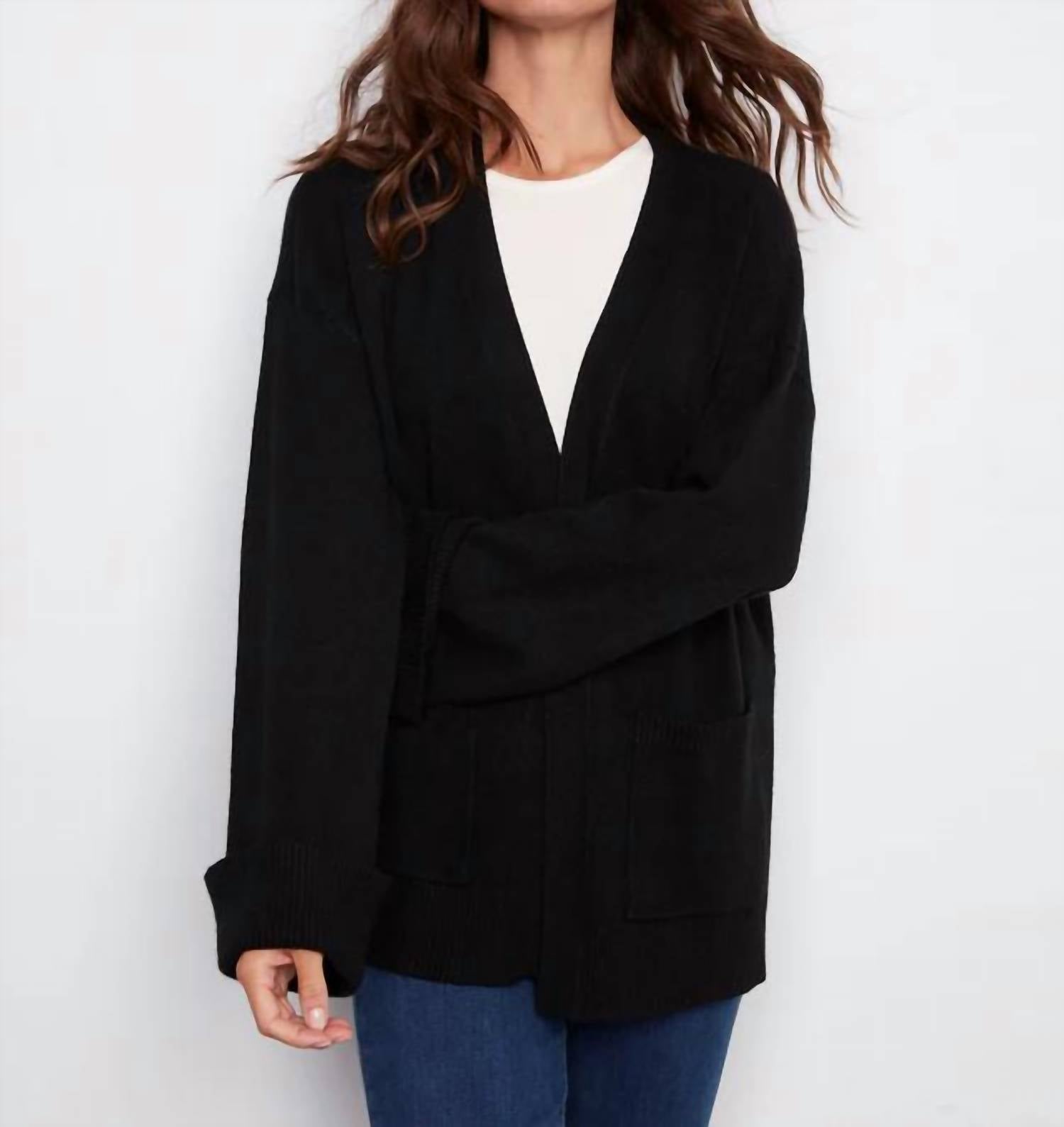 Throw this adorable cardigan over any cami or tank top. Experience both comfort and style this fall with this black cardigan. Featuring long sleeves and convenient patch pockets, it's great for layering over any attire. A relaxed fit and a soft touch ensure you'll want to wear it again and again. Ideal for laid-back days or snug evenings.