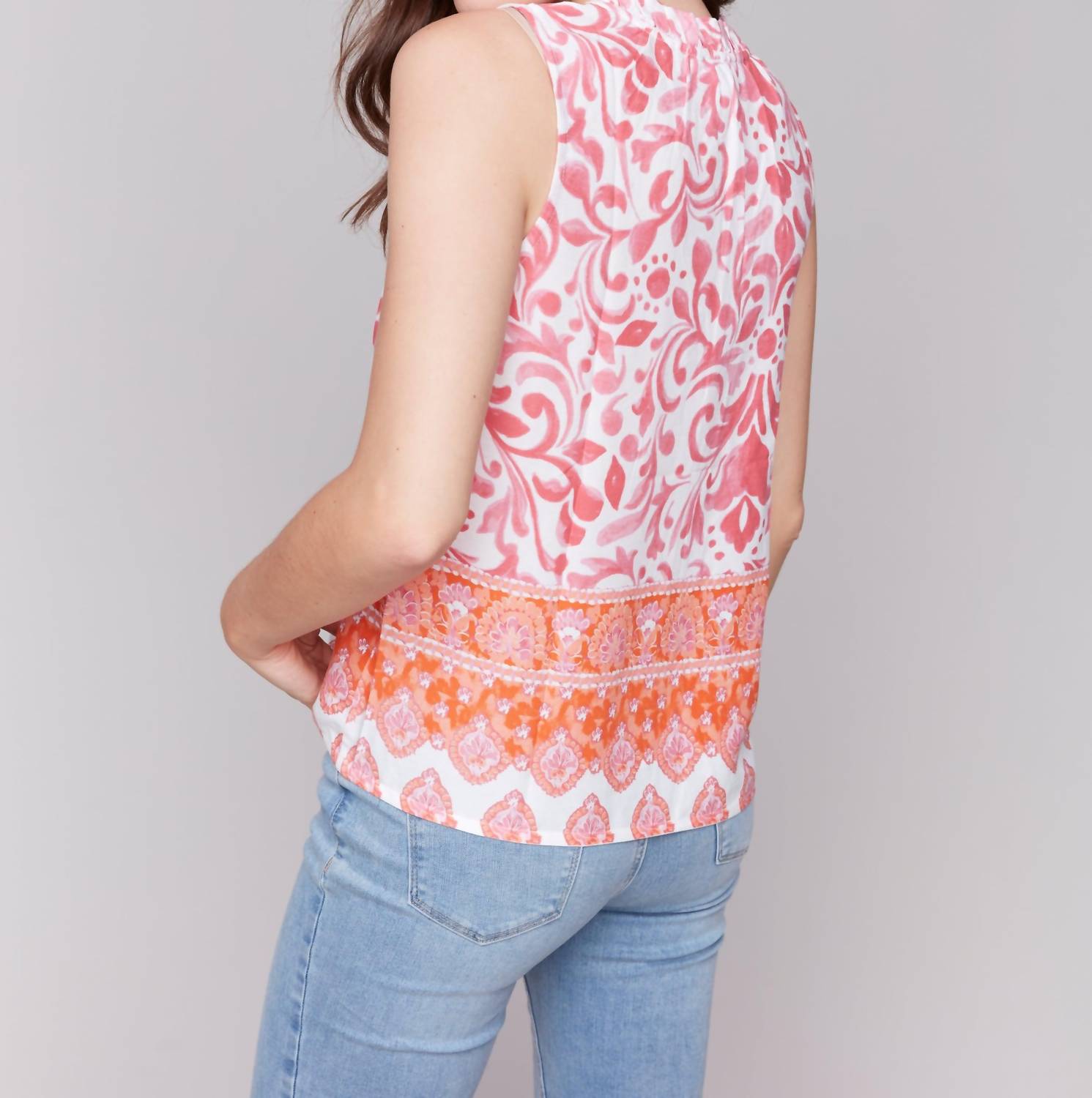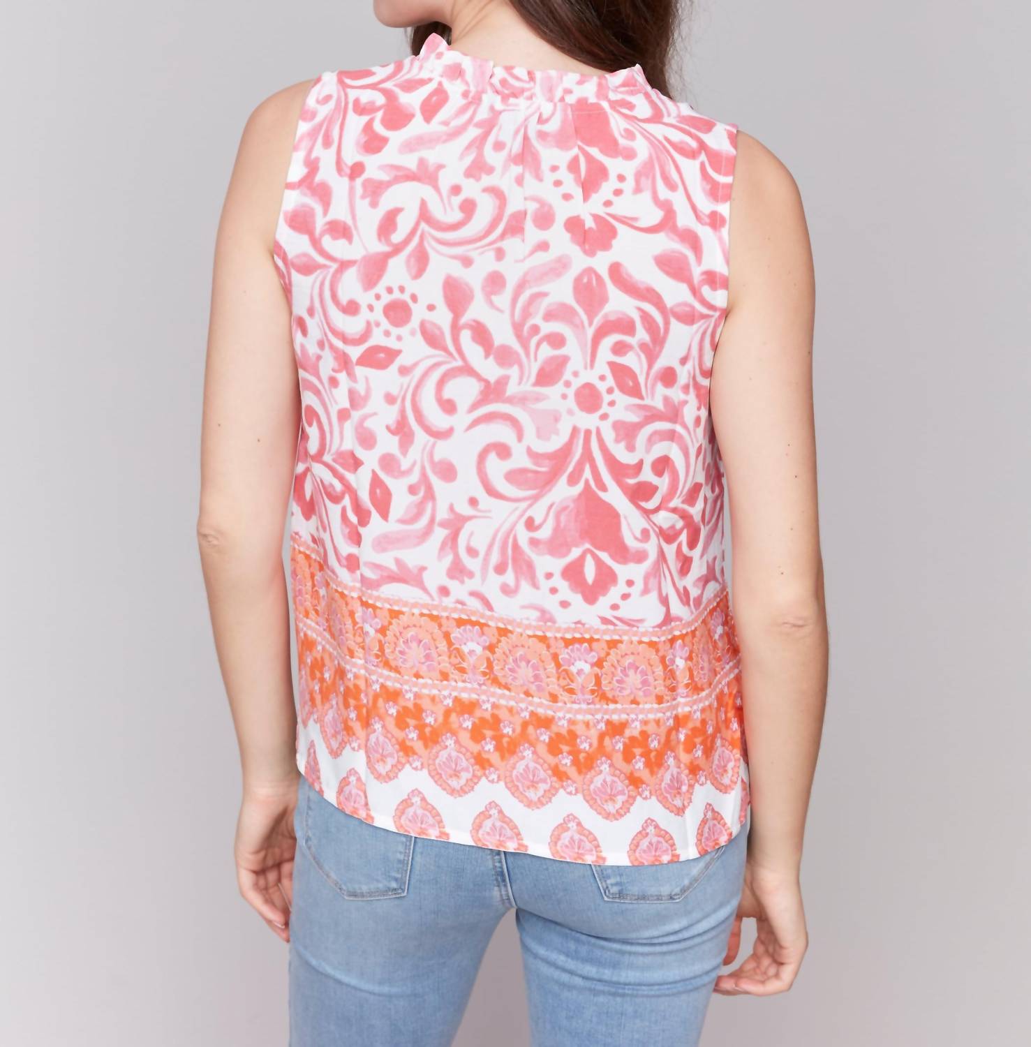 Charlie B - Printed Sleeveless Blouse Ruffled Collar