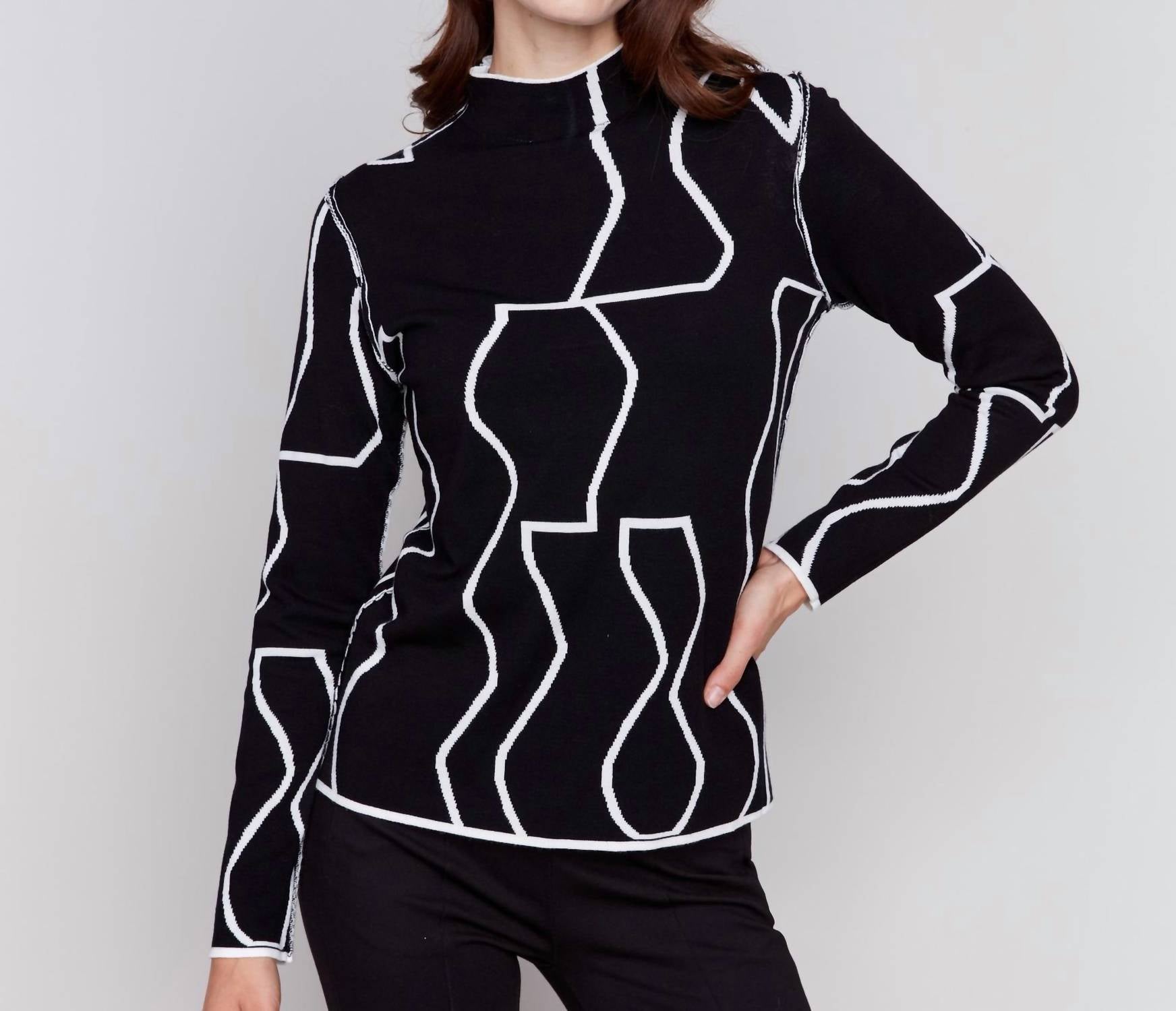 Fit to perfection and effortlessly chic. Black or white reversible sweater with geometric pattern in reverse color