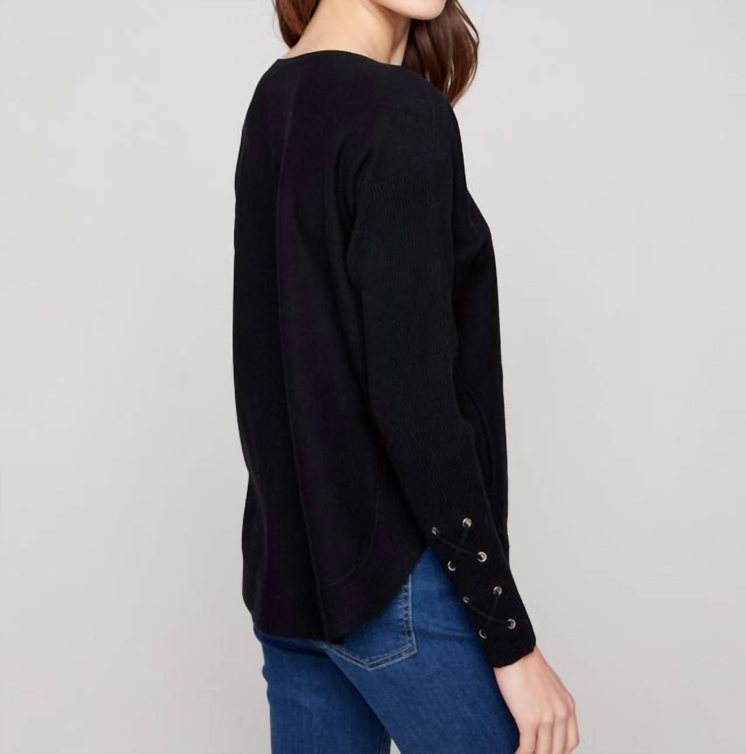 The ultimate go-to sweater, expertly crafted to provide the perfect combination of warmth and style. Its classic design and soft fabric make it a must-have addition to your wardrobe. Discover the Round Hem Sweater With Lace Detail by Charlie B, the perfect minimalist piece for your winter wardrobe. Crafted from luxurious rayon, this long sleeve sweater comes in a chic black hue. With a classic crewneck and a pull-on closure, it’s both stylish and easy to wear. Care for this solid pattern staple by hand washing and laying it flat to dry.