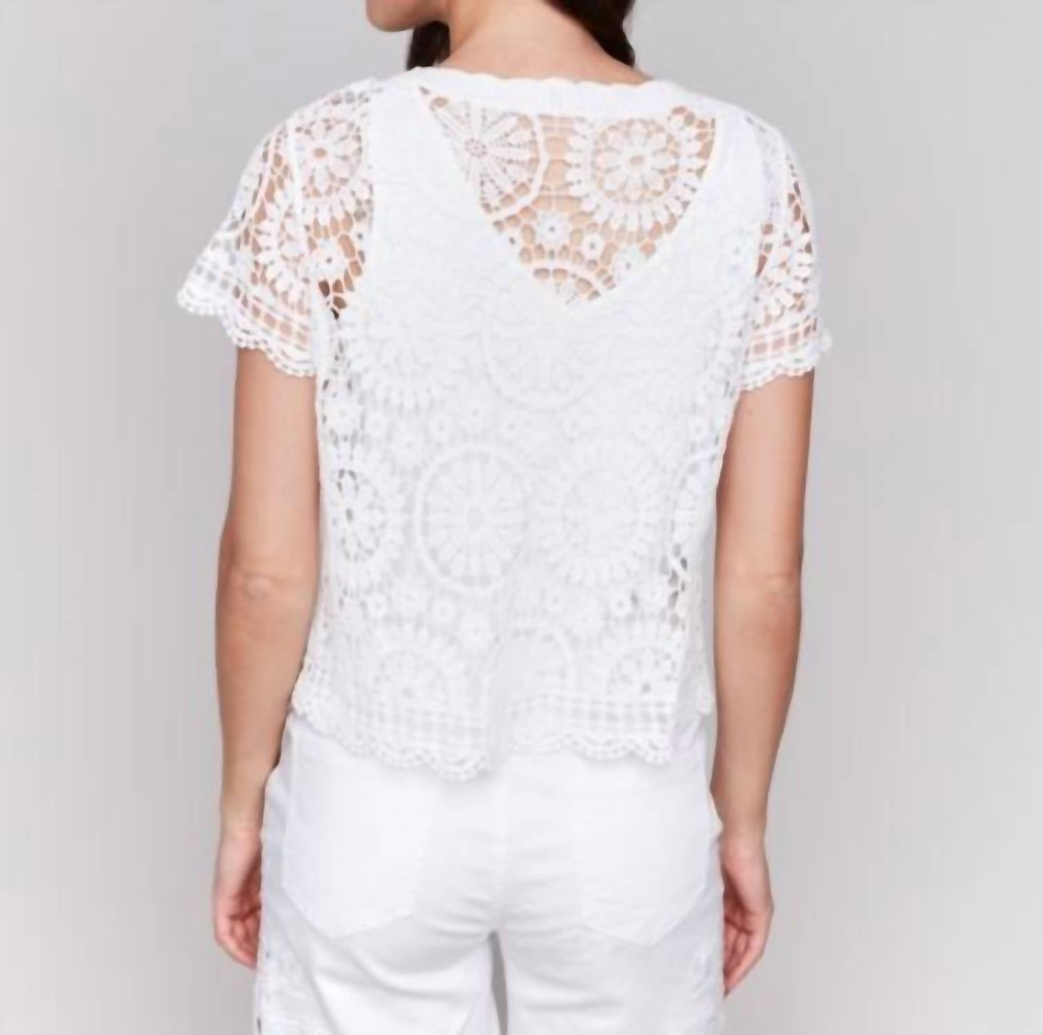 Charlie B - Short Sleeve Crochet Bolero Cardigan