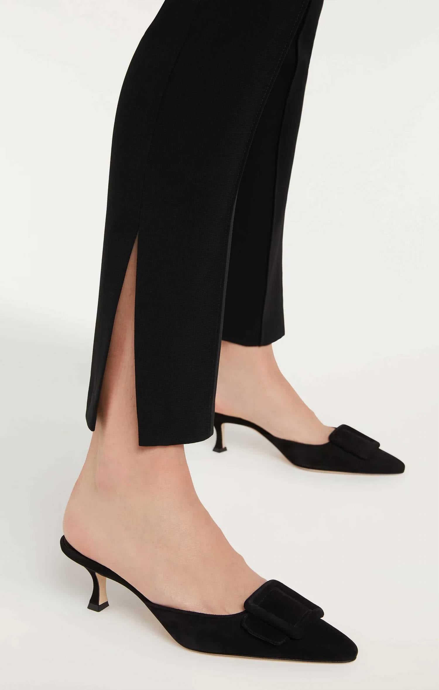Step out in style with the Brianne High-rise Ankle-slit Trousers by Cinq à Sept, perfect for evening events or redefining workwear. Crafted from drapey crepe, these slim-fit trousers in black boast a high-rise, ankle-length design with edgy side slits. The composition is 69% Triacetate and 31% Polyester with a hidden side zipper closure for a sleek finish. Measurements from a size 4 feature a 31-inch (78.74 cm) inseam, and they require dry cleaning.
