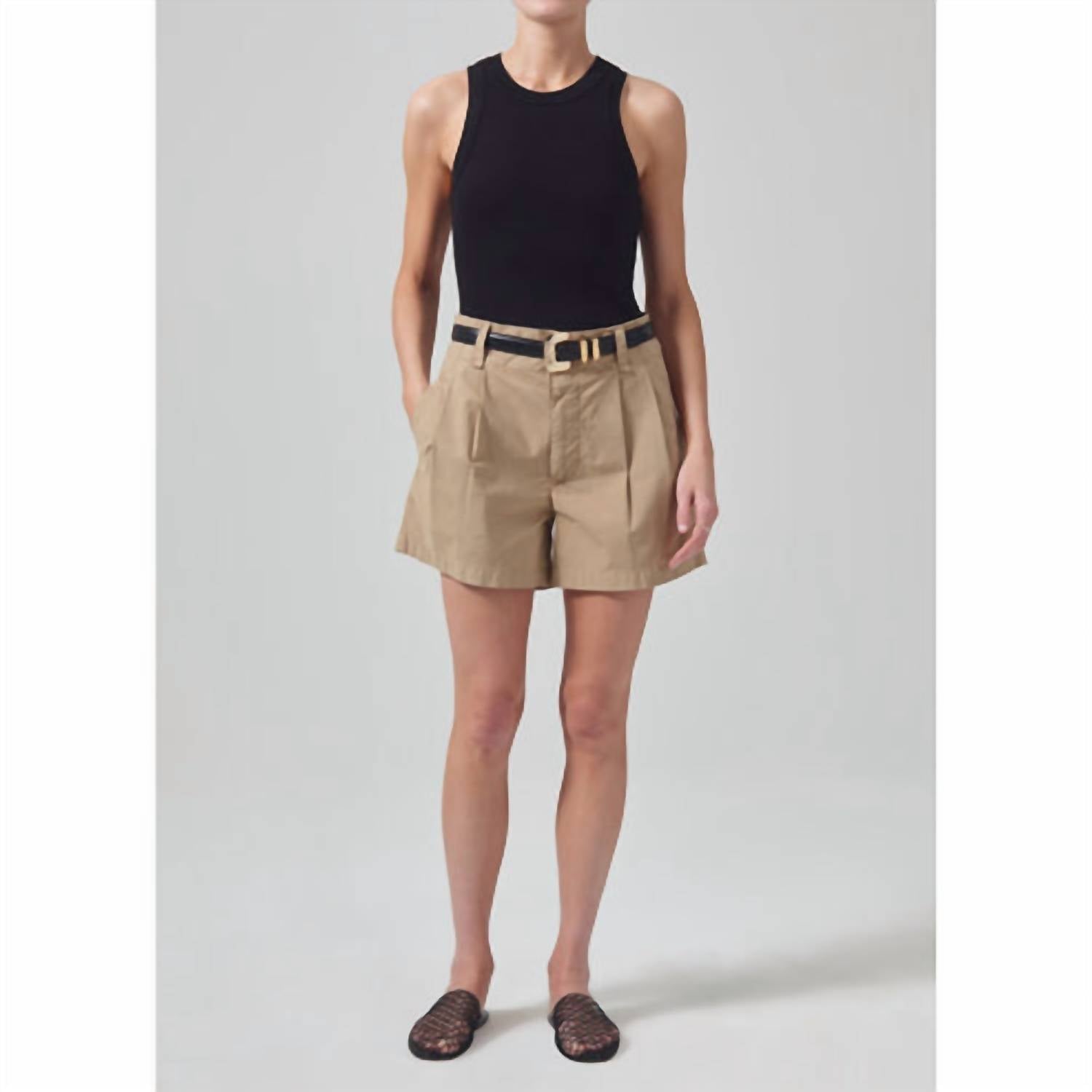 High-waist is here to stay and we especially love this style short. Introducing the Coralin Pleated Short by Citizens of Humanity, a perfect blend of style and comfort in the serene Sandcastle hue. These high-waisted shorts feature a tailored silhouette with pleating, slash pockets, and convenient belt loops. Crafted from lightweight cotton, they offer a touch of stretch for all-day comfort and come with a pull-on closure for easy wear. For care, machine wash and tumble dry as needed, making them ideal for travel and your minimalist summer wardrobe.