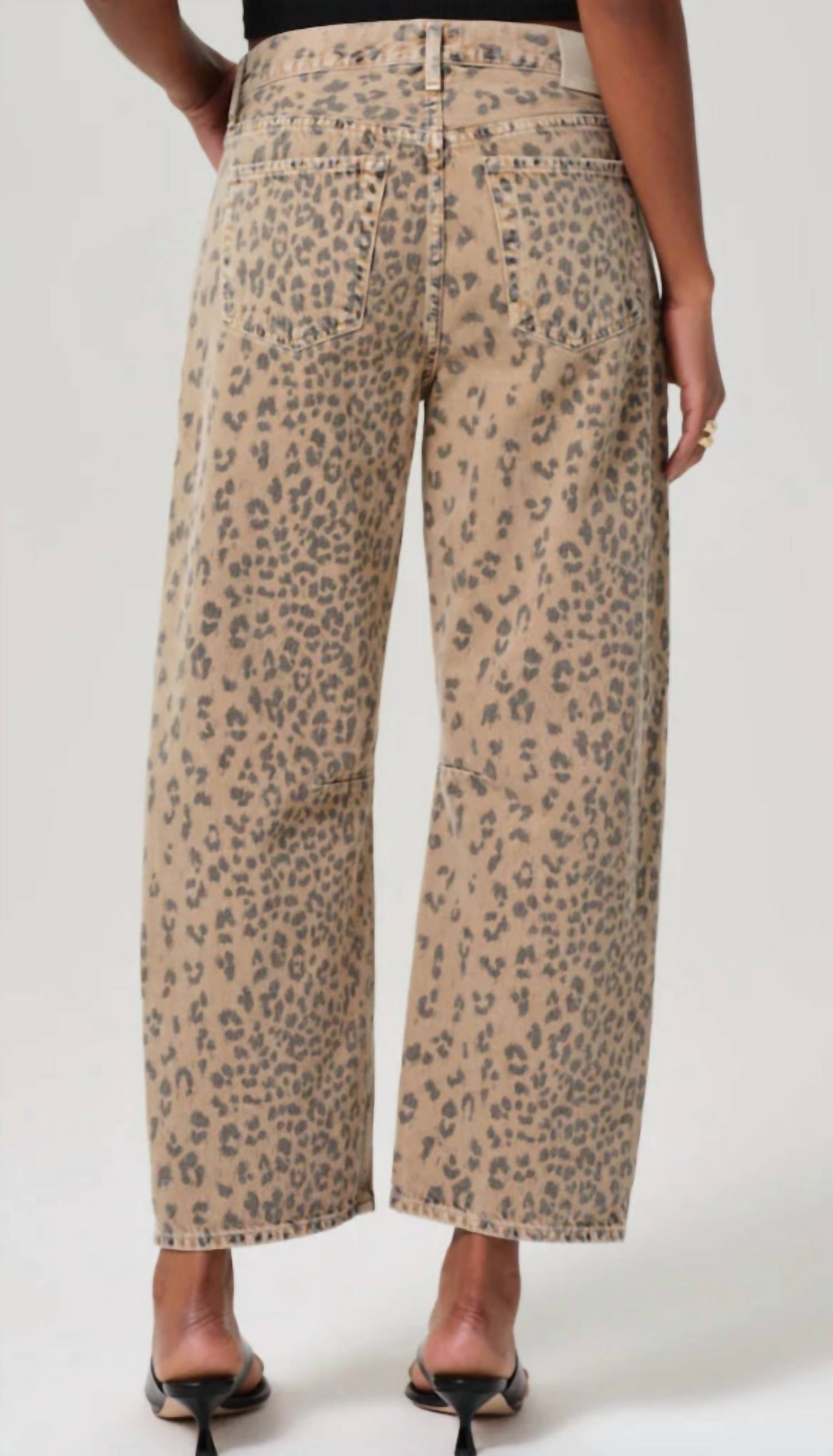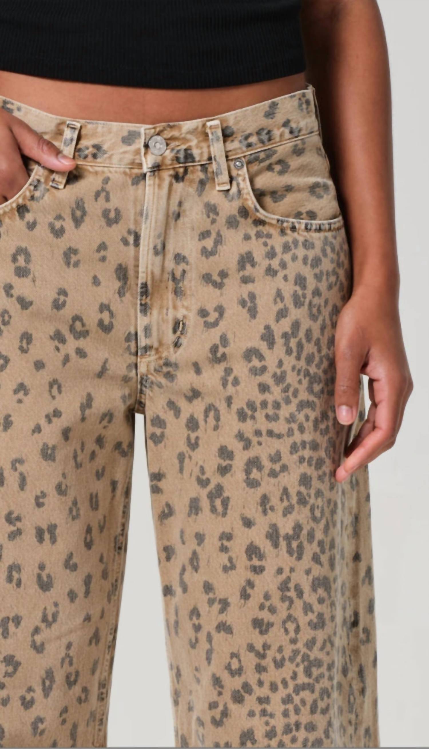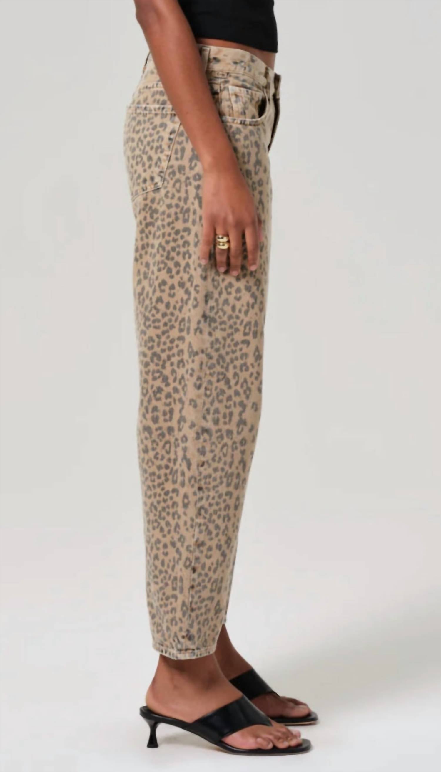 These must-have jeans are fit to perfection. Elevate your wardrobe with the Miro Jean by Citizens of Humanity in Natural Cheetah. Made from 100% cotton, these jeans feature a slightly relaxed top block and a tapered barrel leg silhouette. Boasting a high rise of 12", a 27 1/2" inseam, and a 17 1/2" leg opening, they offer an authentic, non-stretch denim feel. Made in the USA with imported materials, these jeans have a zip fly closure and can be machine washed cold inside out with like colors and tumble dried low. Ideal for spring dinner parties, the 90s-inspired design pairs perfectly with any look. Model is 5'10" and wearing a size 27.