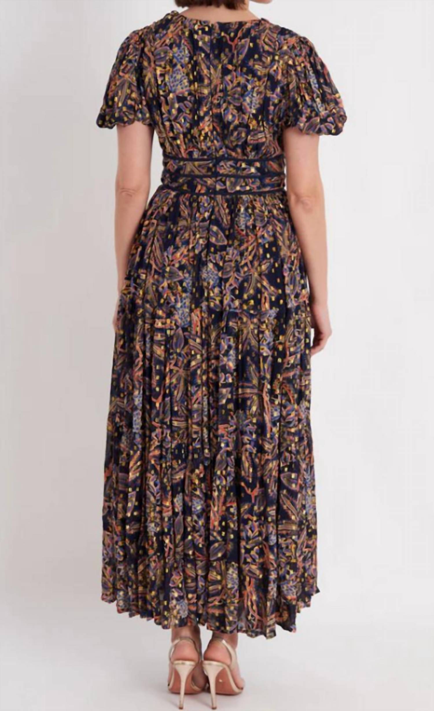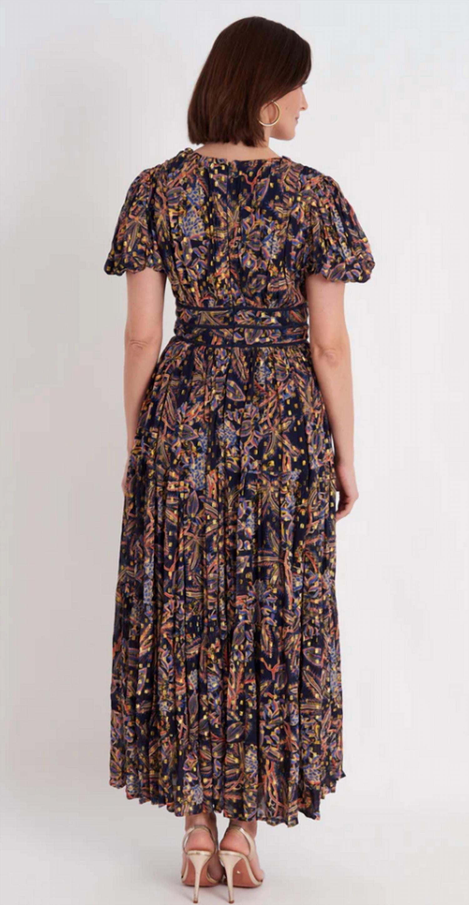 Who doesn't love a good maxi dress? This one you'll be reaching for season after season. The Heather Maxi Dress by CK Bradley is an elegant choice in Kaleta Navy, designed to impress with its puffed short sleeves and empire waist line. Crafted from a metallic shimmer blend of 50% viscose and 50% lurex with a soft 100% cotton lining, this dress ensures comfort while exuding glamour. Featuring a contrasting waistband, practical pockets, and a convenient zip closure, it's a stylish yet functional addition to your wardrobe. Made in India and designed for easy care, this dress should be dry cleaned only.