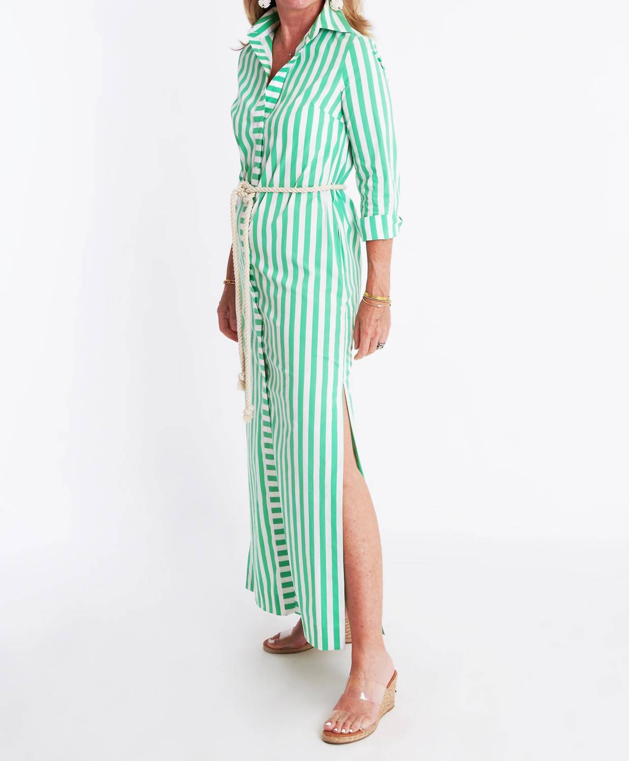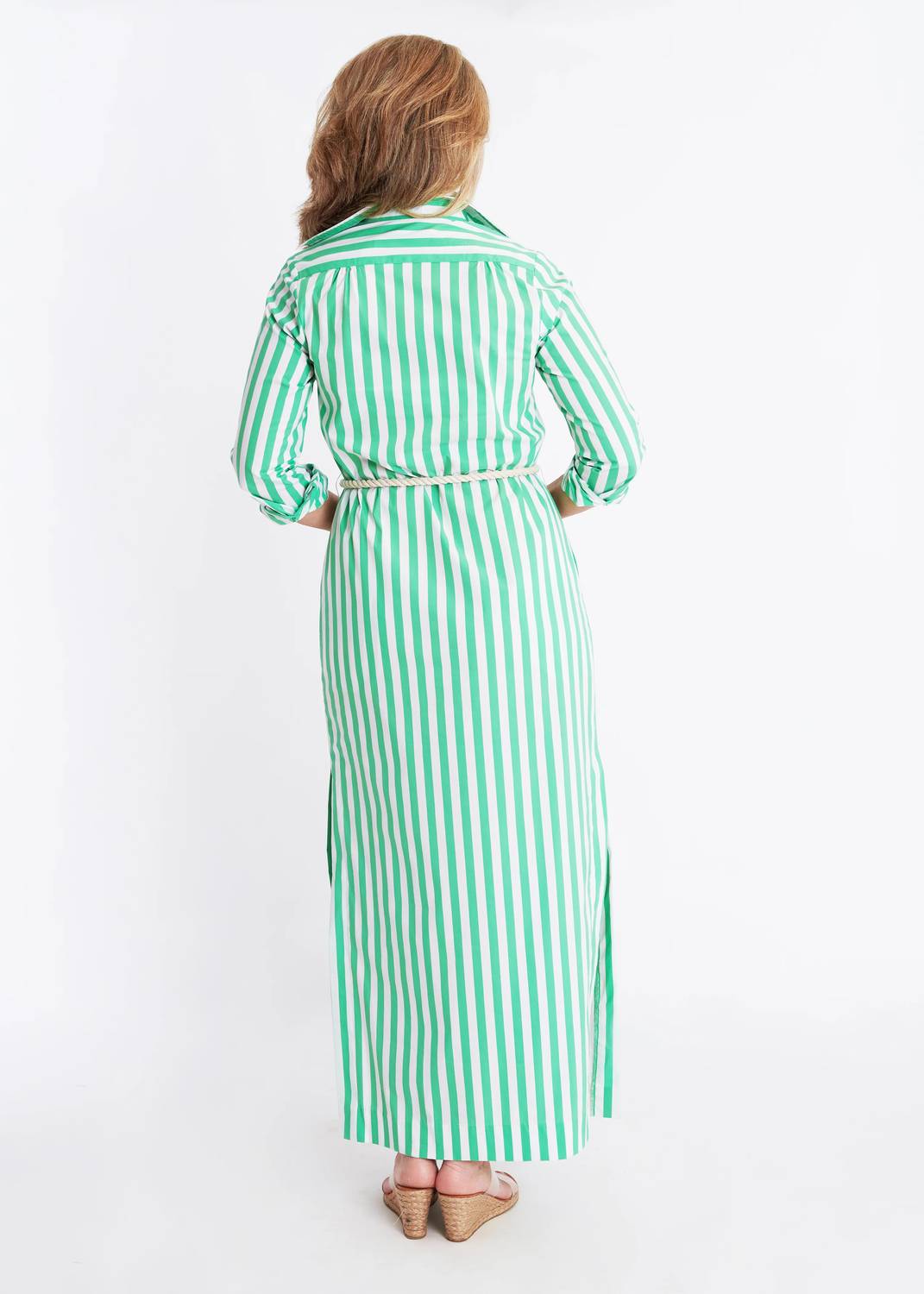 The pefect long sleeve dress for those cooler months. Monteith Caftan - Green Stripe