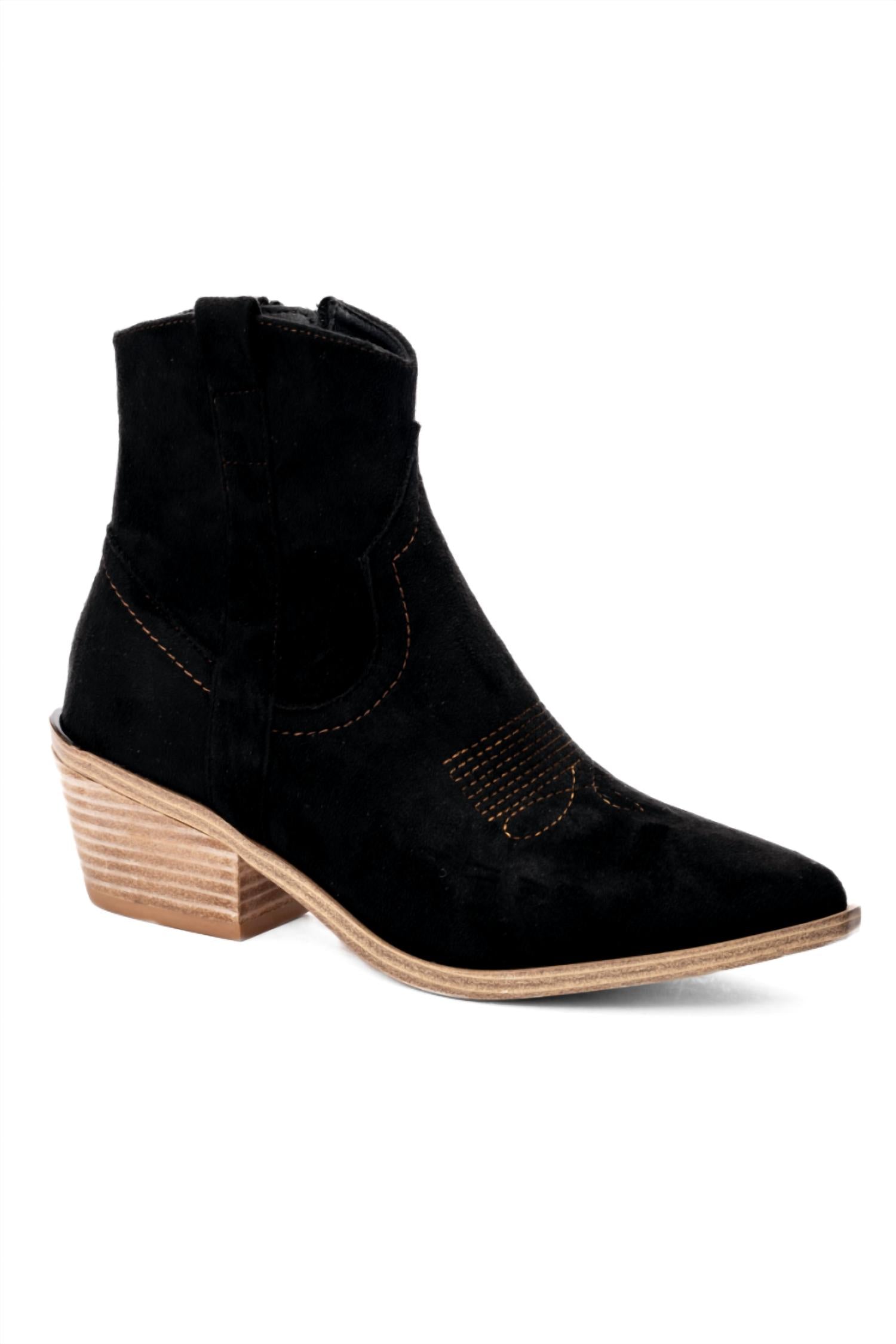 Say hello to the perfect, most versatile boot. The ankle height makes this style easily transition from day to night. Wear them with your favorite skinny jeans and tee for a more laid back look, or pair them with your favorite mini dress and jacket for a night out on the town. Step out in style with the Women's Quittin Time Boots by Corkys Footwear, a must-have fashion bootie in sleek black. Featuring a suede upper with gored sides for flexibility, these boots come with an inside zipper for easy wear. They boast a comfortable lightly cushioned footbed and a chic 2-1/4" heel height, ideal for day-to-night wear. Perfect for adding a touch of sophistication to any outfit.