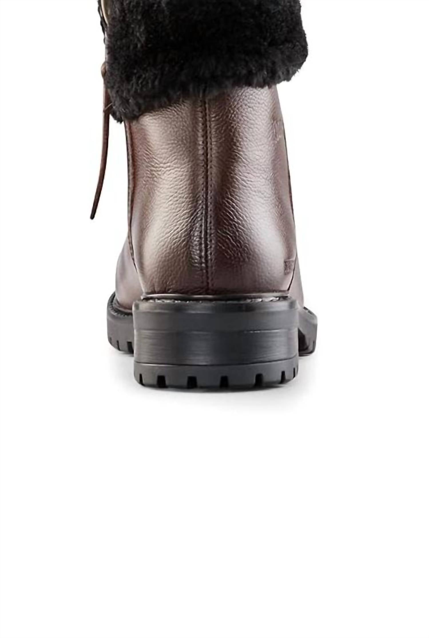 Rainy day? No problem! The cutest and most comfortable rainboots of the season. Introducing the Women's Kendall Boots by COUGAR, a stylish choice for winter and vacations in dark brown. These boots feature a waterproof leather upper with a cozy faux fur collar and a side zipper for easy on and off access. They are designed with a round toe and chunky heel for added comfort and flair, perfect for streetwear enthusiasts. Equipped with a TPR outsole and molded foam insole, this is an ideal pair for the cold season.