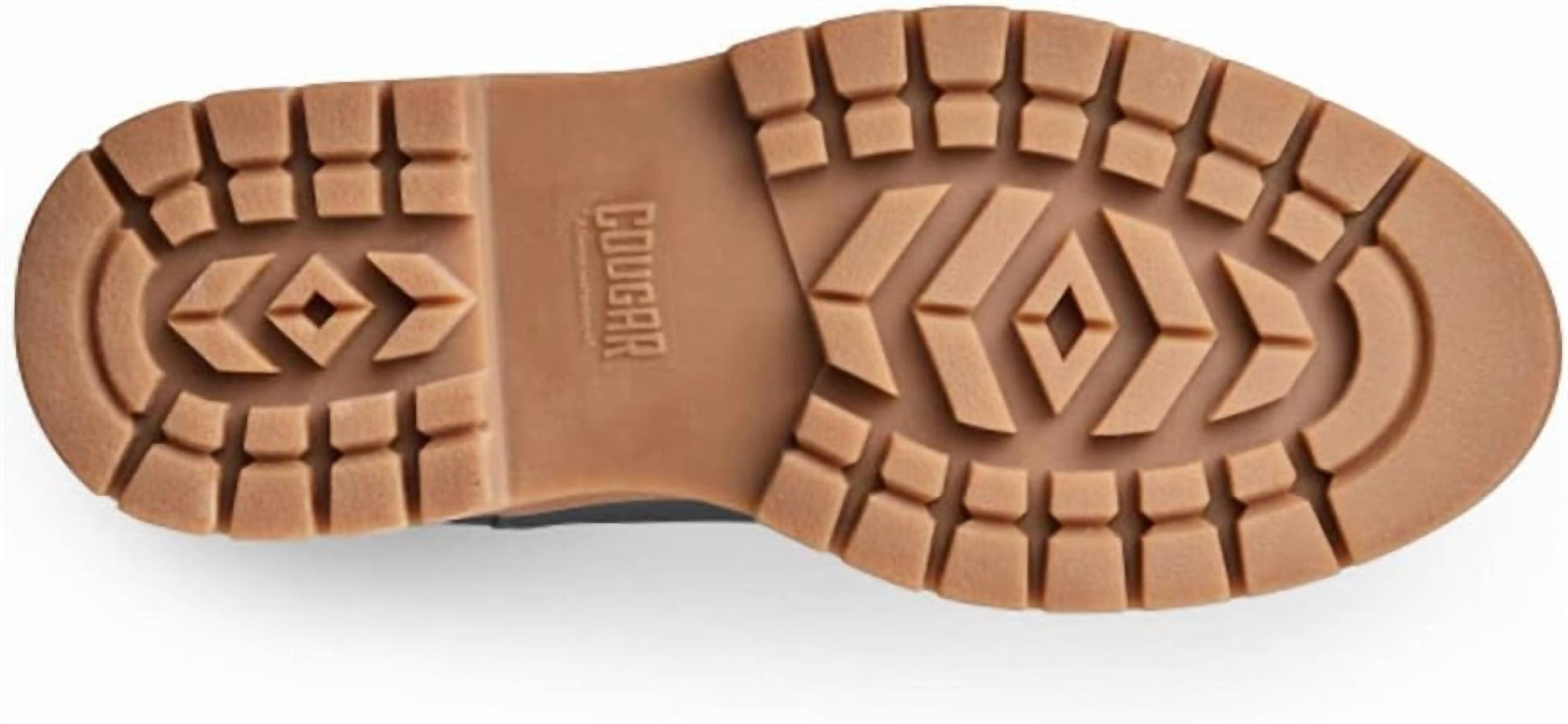You'll be wishing for rainy days with these stylish yet functional rainboots. Embrace the elements with the Women's Swinton Boot by COUGAR, designed for travel and preppy style during the fall season. These winter and rain boots feature a sleek black/gum color and are crafted from durable leather, ensuring both comfort and longevity. With a round toe shape and a mid heel height of 2.5 inches, they provide just the right amount of elevation. Perfect for adult women who prioritize fashion and functionality on their journeys.