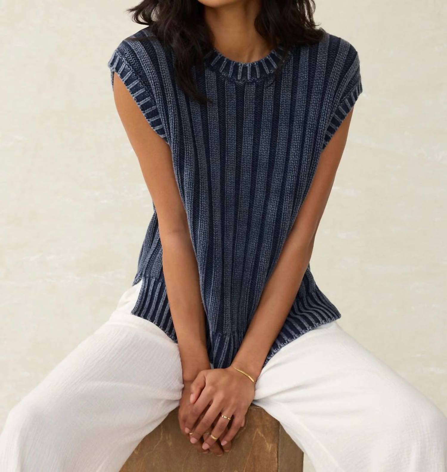 Stay warm and stylish in this versatile and effortlessly cool knitwear staple. Wear it alone or layered, it's the perfect sweater for the season and you'll wish you had it in every color. Embrace the charm of Faherty's Sunwashed Sweater Vest, a sleeveless piece crafted from 100% organic cotton for exceptional comfort and style. This textured cable knit vest features rib trims at the neckline, armholes, and bottom hem, offering a classic fit that's perfect for layering. With a convenient pull-on closure, it seamlessly integrates into any wardrobe. Hand wash cold with like colors, lay flat to dry, cool iron if needed, or dry clean to maintain its pristine condition.