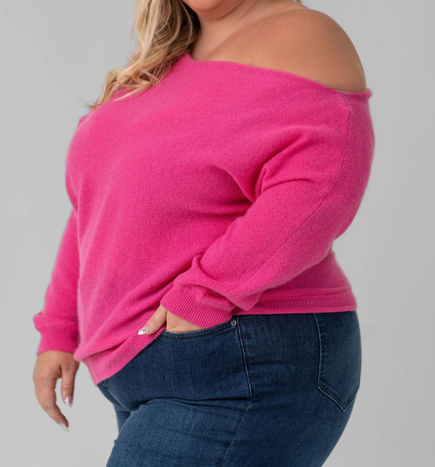 Show just the right amount of skin in the cutest sweater of the season. Embrace cozy sophistication with the Cashmere Off The Shoulder Top by Minnie Rose, a luxurious piece in vibrant Azalea. This plus-sized sweater showcases a chic off-the-shoulder neckline with long sleeves, crafted entirely from solid cashmere for a smooth finish. Originating without specific details on the country of origin, this sweater is ideal for your fall wardrobe, especially for Thanksgiving travels. Easy to maintain, just machine wash and lay flat to dry, making it a practical yet stylish addition to any wardrobe.