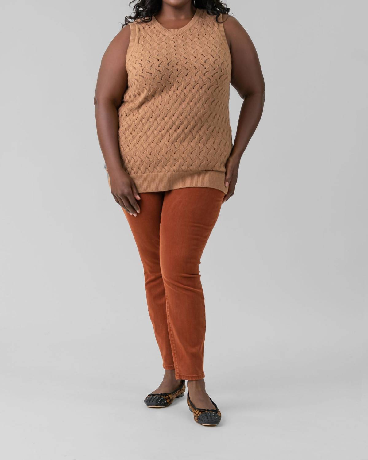 This classic tank top is perfect for layering and cute enough to wear on its own. Elevate your casual ensemble with the Cotton Cashmere Pointelle Tank by Minnie Rose in a charming camel hue. This sleeveless top features a textured, feminine design with a crewneck and cropped length that perfectly complements high-waisted jeans or skirts. Made from a soft cotton blend fabric, this tank is ideal for fall travels and Thanksgiving gatherings. It offers a pull-on closure and requires hand washing and line drying for optimal care.