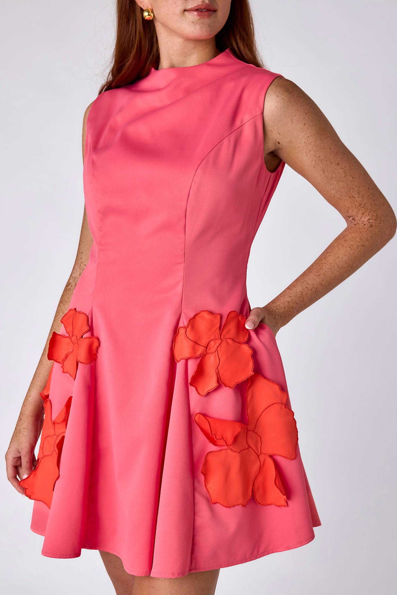 The kind of easy and flattering dress you'll be reaching for all season long. Introducing the Declan Mini Dress by Crosby by Mollie Burch, an elegant sleeveless piece in a captivating floral pattern. This fit and flare silhouette in Wild Rose features delicate floral appliqué and handy pockets for a perfect blend of style and practicality. Closure: Zip closure. Care: Dry clean only. Ideal for a cocktail party or Easter celebration.