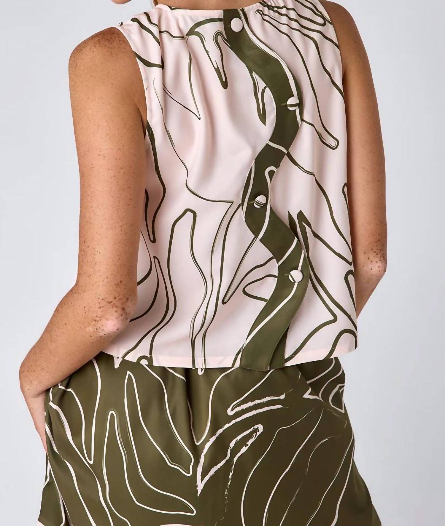 Fit, fabric and functionality. This tank top checks all the boxes. Stylish and versatile piece in Climbing Ivy Light. Sleeveless tank features a crewneck and button-back detail, offering a relaxed fit and hip-length design. Made from medium-weight Poly Twill, promises comfort with a crisp, structured drape. Care is a breeze with machine wash cold on a delicate cycle and lay flat to dry.