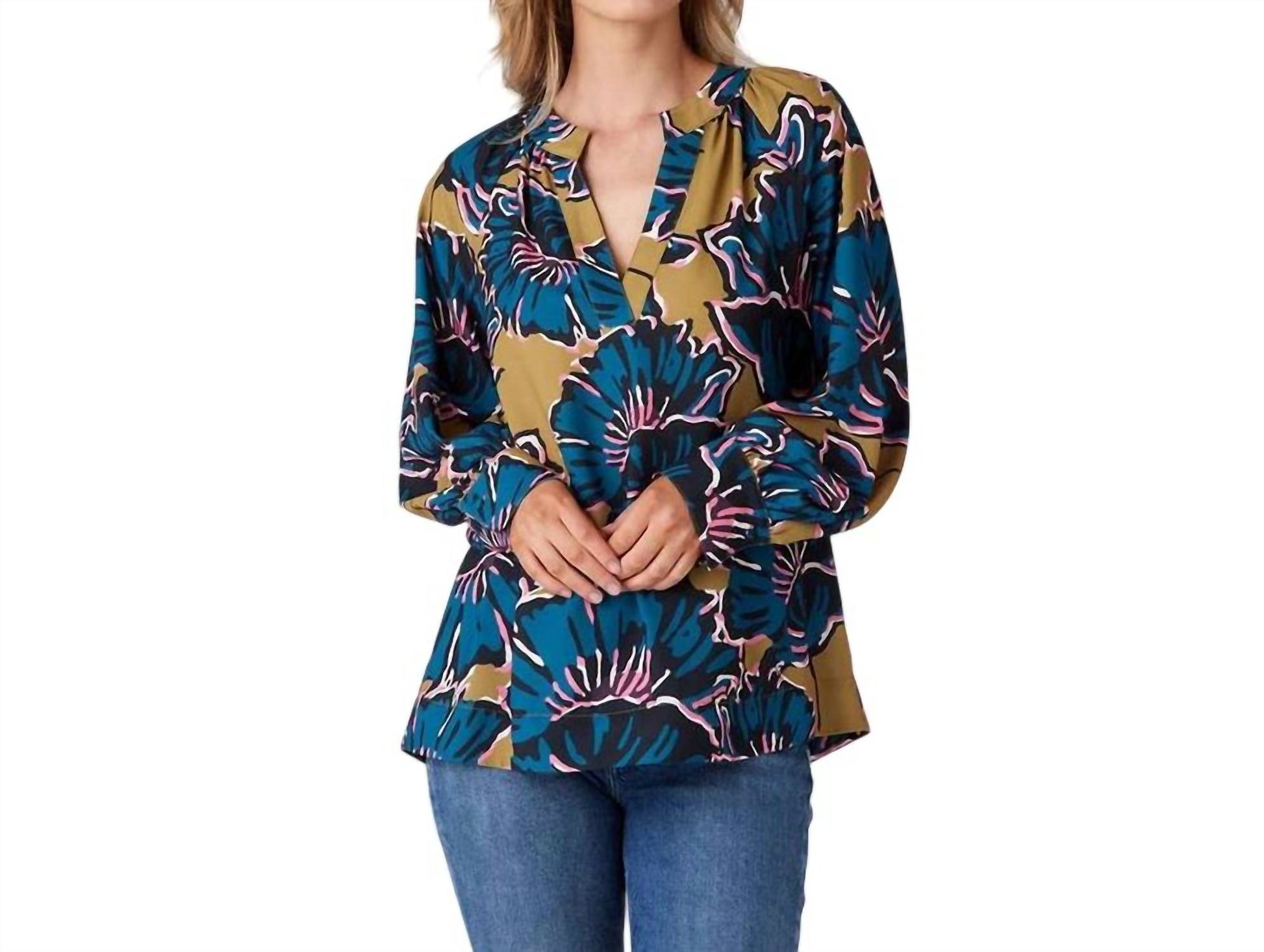 Discover the versatile charm of this tunic blouse, designed with both layering and standalone wear in mind. Its flattering silhouette and stylish details make it a closet essential. Introducing the Rhett Long Sleeve Tunic Top by Crosby by Mollie Burch, a vibrant addition to your wardrobe in a stunning marigold floral pattern. This top is crafted from subtly-textured crepe fabric and features elegant raglan long sleeves with a timeless split V-neckline. Made from durable polyester, it boasts a versatile 27" length and is conveniently finished with a pull-on closure. Ensure longevity with machine wash care and lay flat to dry, making it ideal for a stylish housewarming occasion or embracing 90s fashion trends.