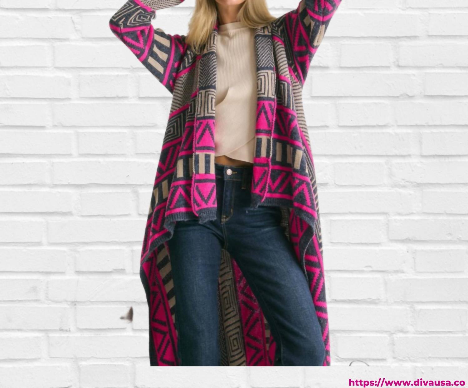 Throw this adorable cardigan over any cami or tank top. Introducing the Printed Shawl Fringed Hem Cardigan by DAVI & DANI, crafted from soft fleece and adorned with a vibrant tribal print. This women's cardigan features long sleeves and a stylish fringed hem, perfect for fall layering. Designed for easy wear, it has a pull-on closure and a collar neckline, offering both comfort and convenience. Care for this piece by hand washing it, ensuring it remains a staple in your wardrobe for seasons to come.