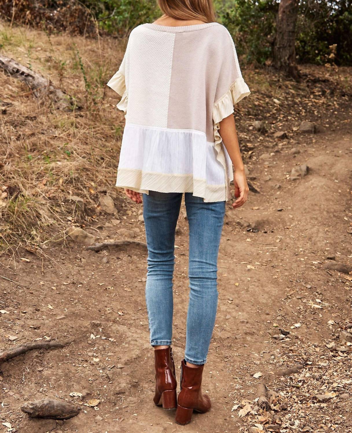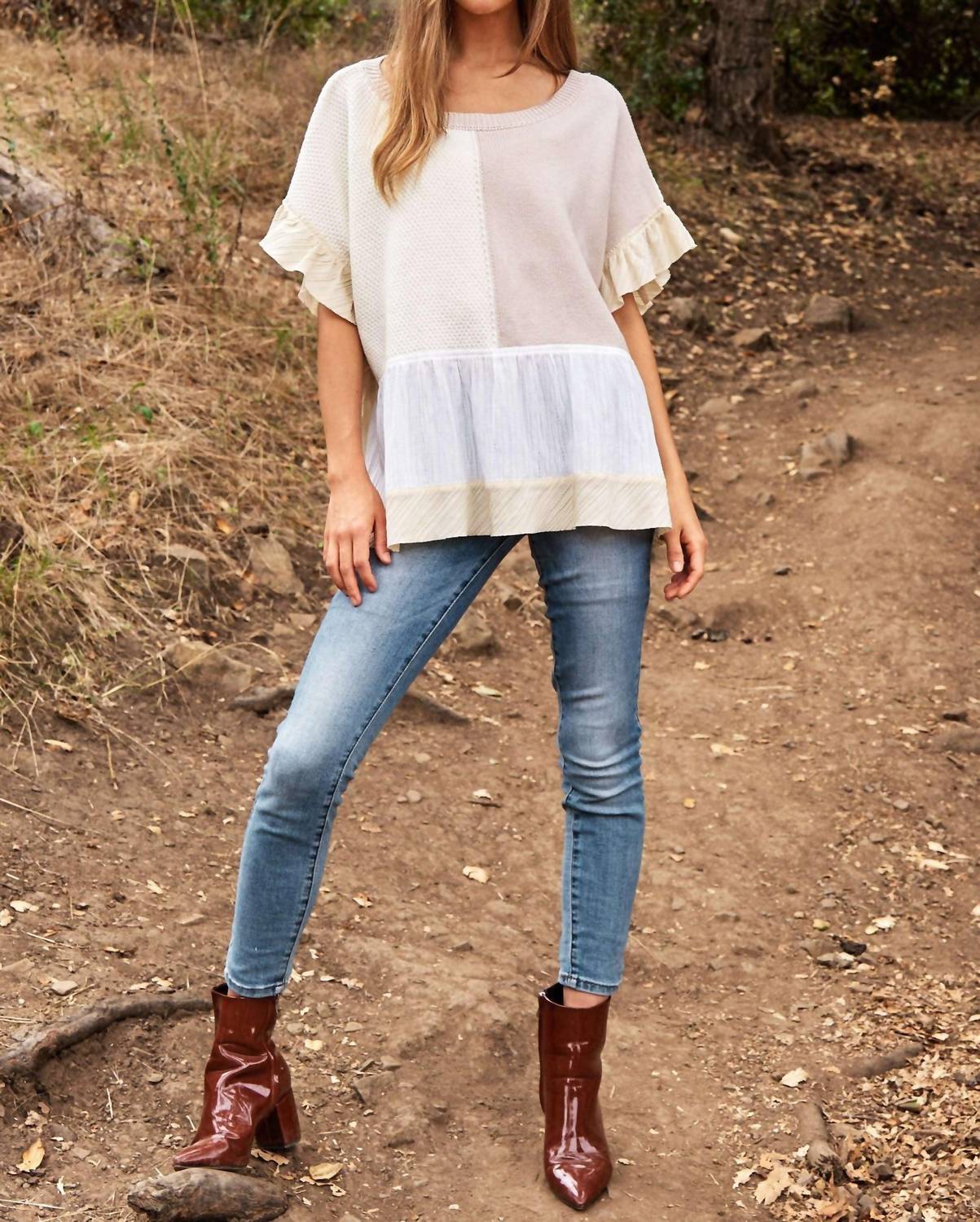 Davi & Dani - Mix Match Textured Ruffle Detail Sweater Top