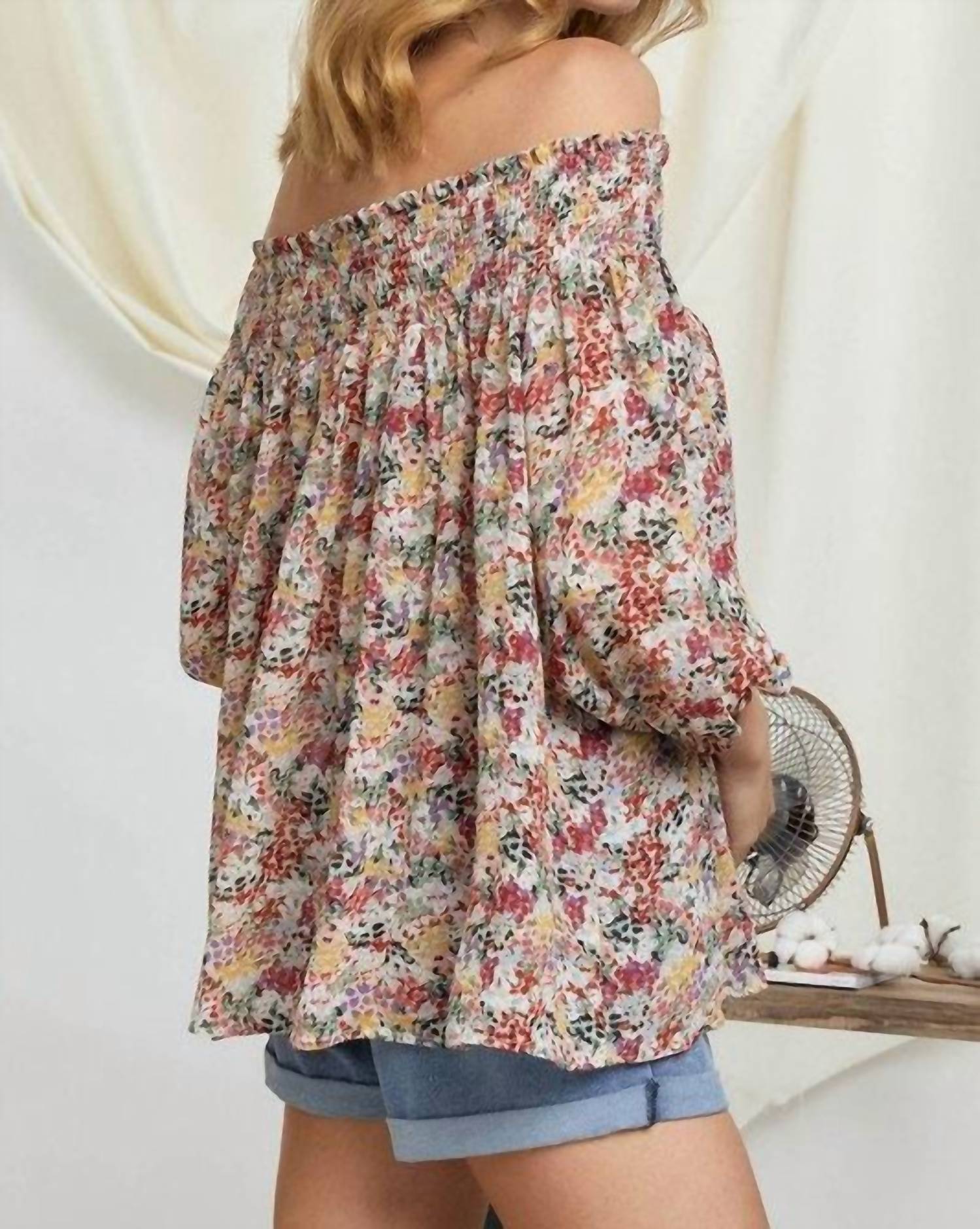 Davi & Dani - Floral Smocked Off Shoulder Top