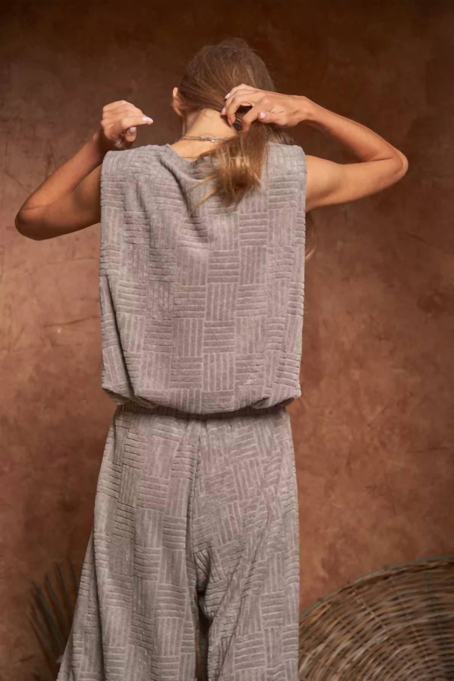 Davi & Dani - Velvet Textured Sleeveless Round Neck Top