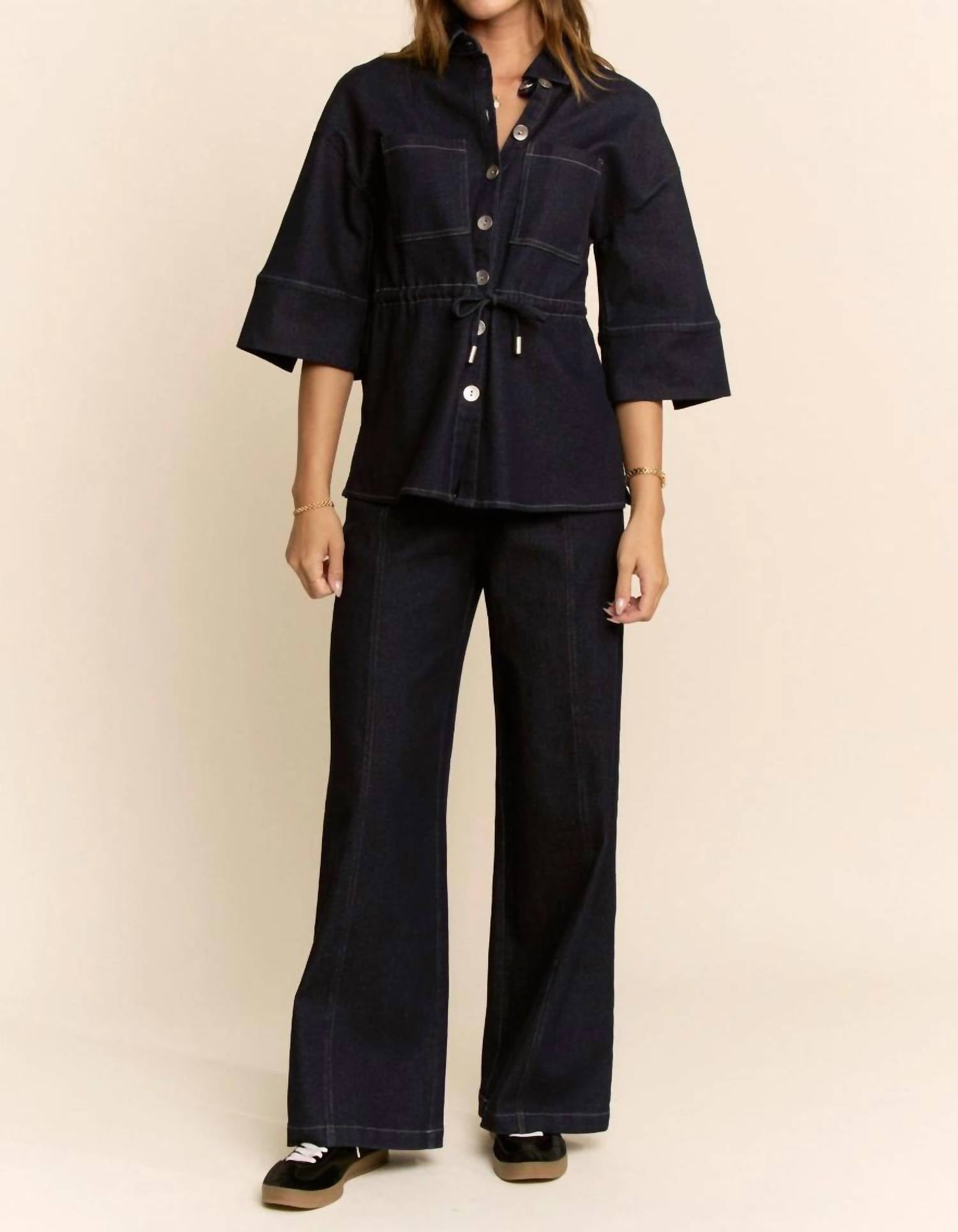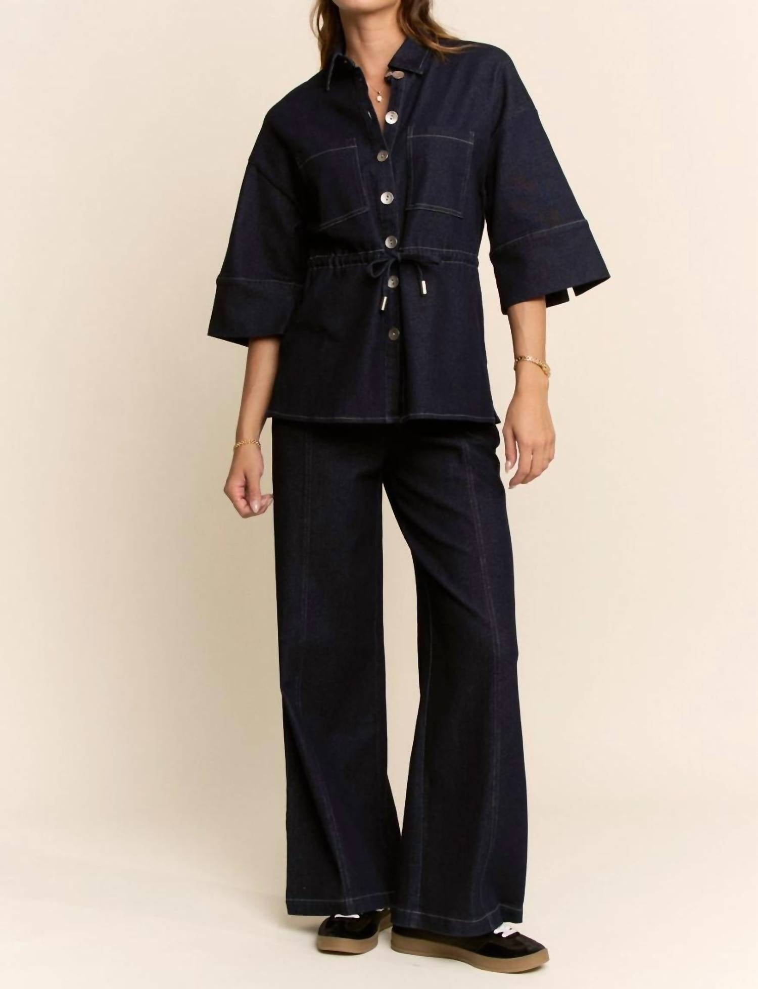 Davi & Dani - Denim Shirt Relaxed Pant Set