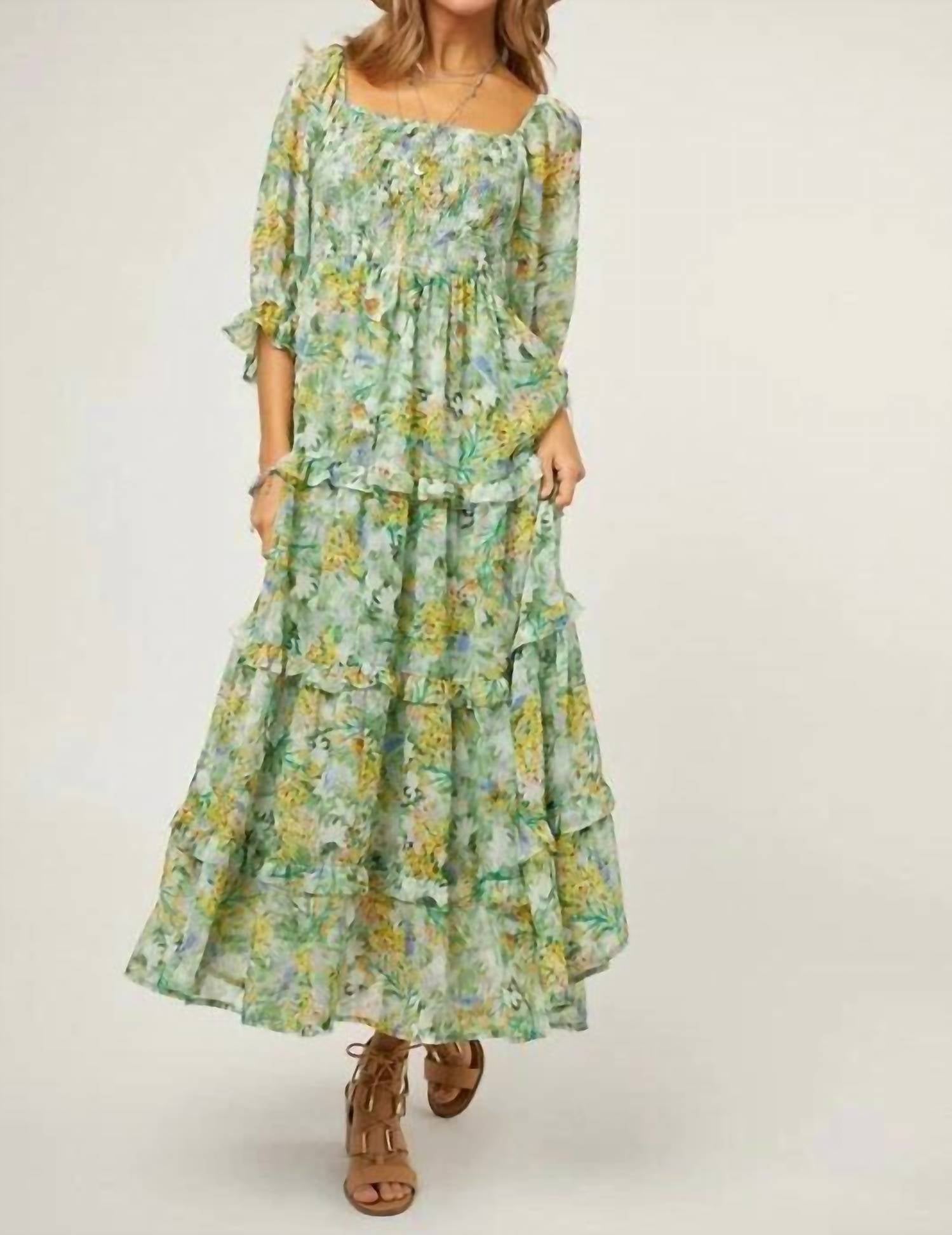 Just add slides or mules and you are good to go. This floral print chiffon midi dress delivers a romantic, boho-chic feel with a flattering and feminine silhouette. Designed with a square neckline and a smocked bodice, it offers comfortable stretch and shape, while puff sleeves add soft volume and charm. The tiered skirt creates graceful movement, and the fully lined finish ensures ease of wear. Crafted from 100% polyester with a 100% polyester lining, it’s a versatile piece perfect for any occasion.
