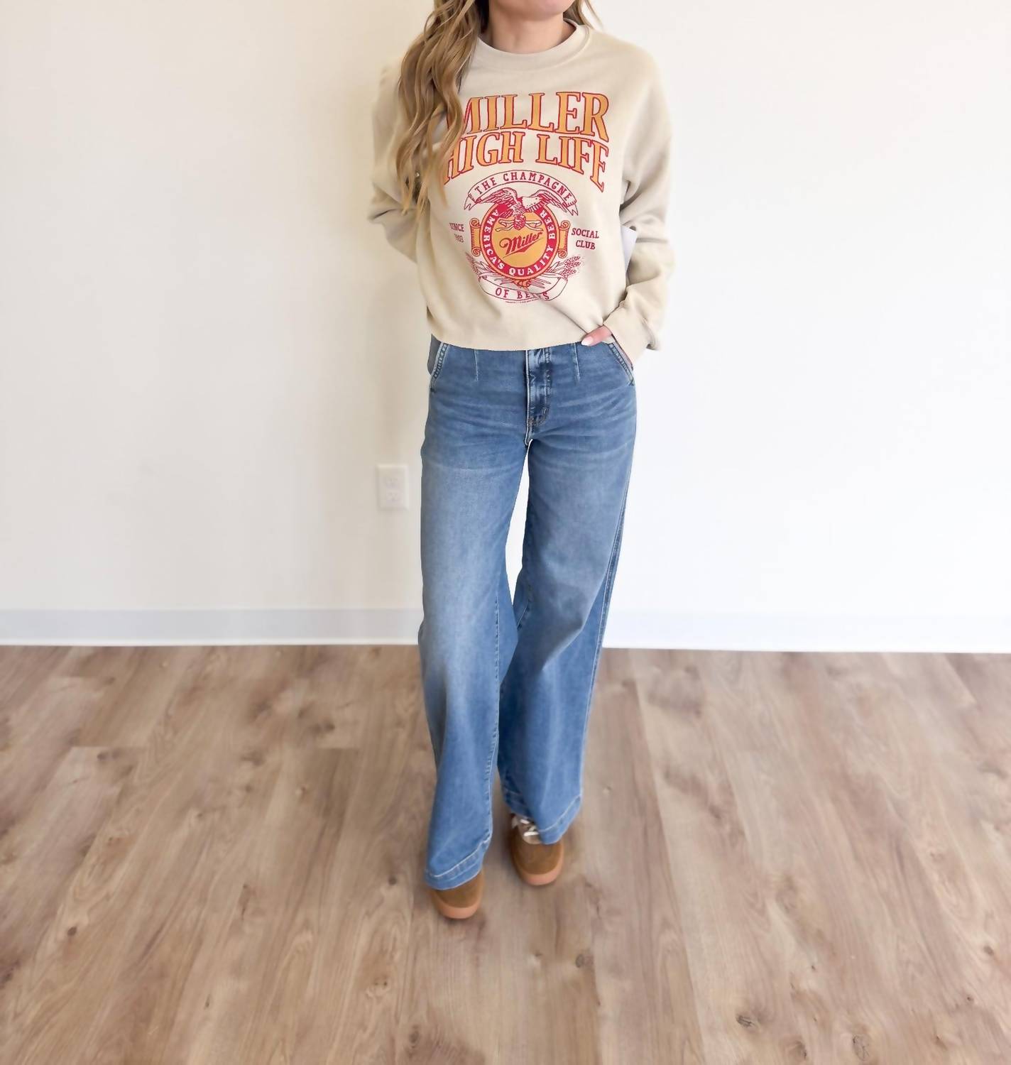 Tuck your favorite tee into these high-waist jeans for a more casual-cool feel. Elevate your denim collection with the Janiyah Trouser Jeans by DAZE, designed in a chic medium wash with a tie-dye pattern. Crafted from high-quality denim, these trousers feature a high-rise waist and straight-leg fit, ensuring comfort throughout the day. Closure is made easy with a button closure, and they come equipped with pockets for added convenience. Ideal for summer and perfect for workwear or back-to-school outfits, simply machine wash to keep them looking fresh. Shaina showcases the perfect fit in a size 24.