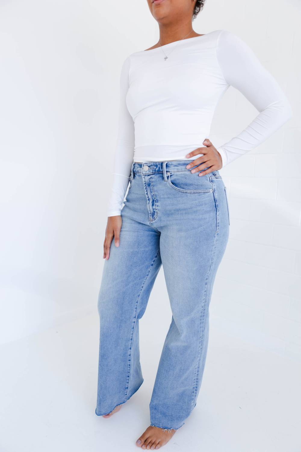 Pair these wide leg jeans with mules, slides or your favorite strappy sandals. Introducing the Women's Fiona High Rise Pant by DEAR JOHN DENIM, the perfect fusion of comfort and style in Arctic Denim. These high rise, wide leg jeans are crafted from a stretch blend of 92% cotton, 6% recycled polyester, and 2% spandex, ensuring a cozy fit that naturally accentuates your hips and thighs. Designed with an 11 1/2" front rise, 24 1/2" leg opening, and 31" inseam (size 27), they feature hand sanding details, cut-off hem accents, and a zip fly with button closure for a chic look. Imported and easy to care for, simply machine wash cold and tumble dry low to maintain their buttery softness and enduring style.