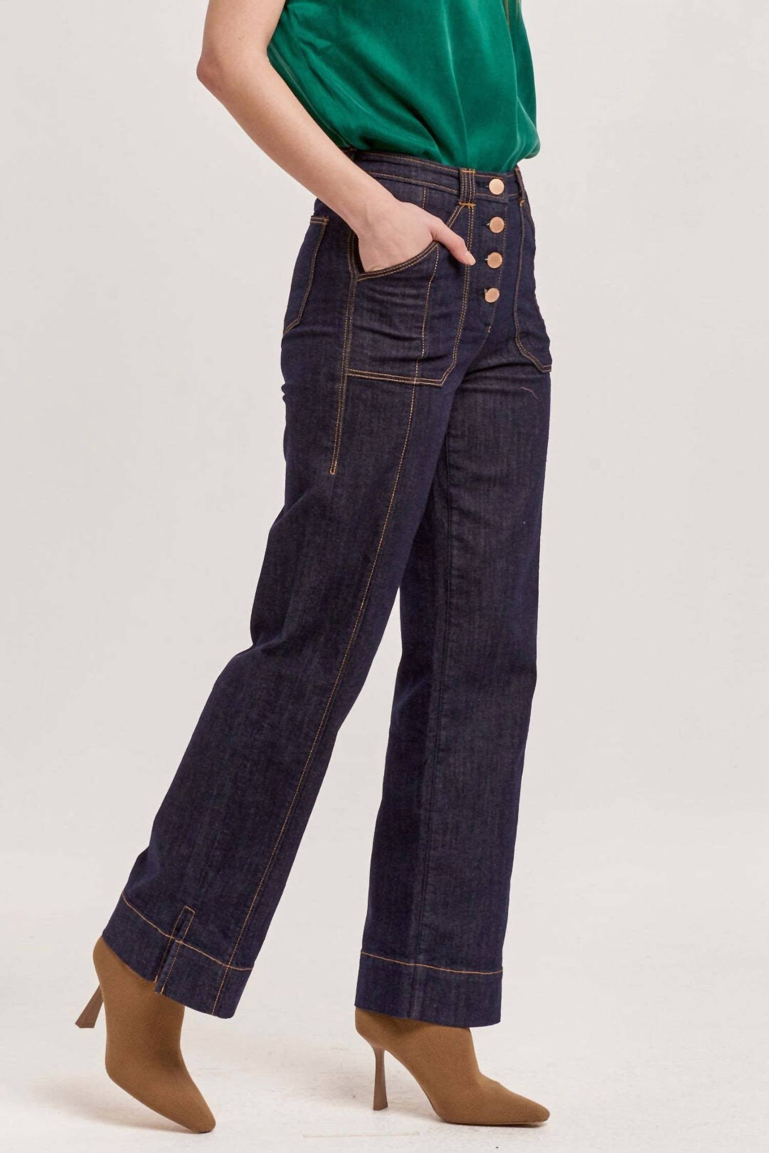 Pair these wide leg jeans with mules, slides or your favorite strappy sandals. Elevate your wardrobe with the Holly Button Fly Denim by Dear John Denim, designed for women seeking a relaxed fit with a high rise. Crafted from a comfortable cotton blend, these wide-leg pants in the Kentfield color present a minimalist appeal. Featuring a button closure and ample pocket space, their 30-inch inseam offers a perfect length for a variety of occasions. Care is easy with hand wash and tumble dry instructions, making them a versatile addition for your summer vacation style.