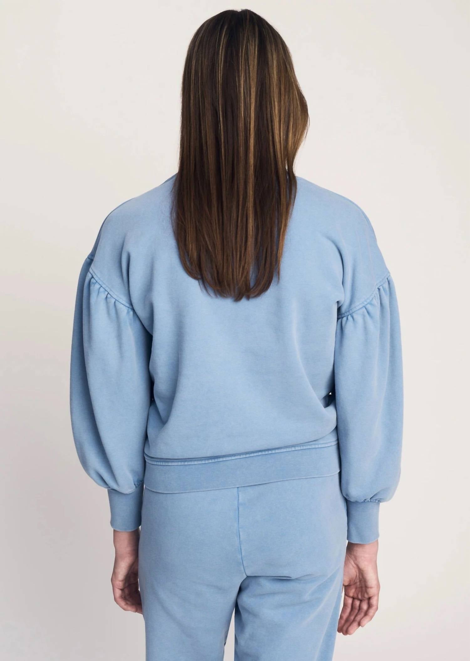 Cooler temps call for layering and we love this adorable sweatshirt for all the obvious reasons. Crafted from hand-dyed cotton terry, this relaxed sweatshirt combines laid-back comfort with effortless style. It features a V-neckline, drop shoulders, and softly gathered sleeves, all designed for a cozy, lived-in feel. Made from 100% cotton, it's delightfully soft and perfect for everyday wear. Pair it with matching joggers for a coordinated look.