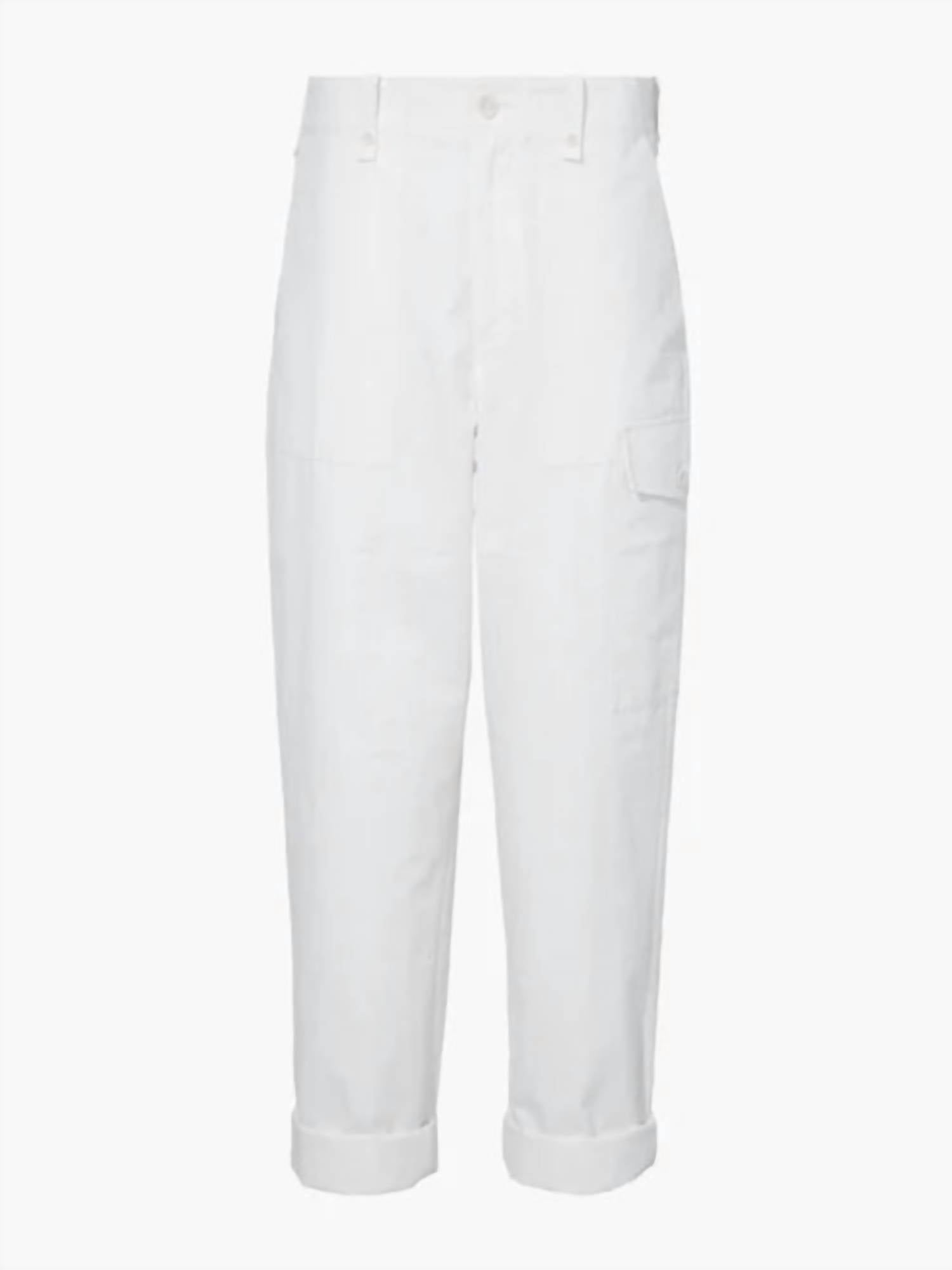 Upgrade your wardrobe with these cropped pants, designed to merge sophistication and wearability. The tailored fit ensures ultimate comfort during long days or nights out. Presenting the Octavia Pant by Proenza Schouler, an essential addition in off-white for a refined summer wardrobe. These ankle-length pants feature a tapered leg with a relaxed fit, crafted from a blend of 85% cotton and 15% linen. With a zip and button closure, buttoned belt loops, side slip pockets, and flap pocket details, they merge functionality with style. Care instructions recommend dry cleaning, ensuring they stay as pristine as the day you first wore them.