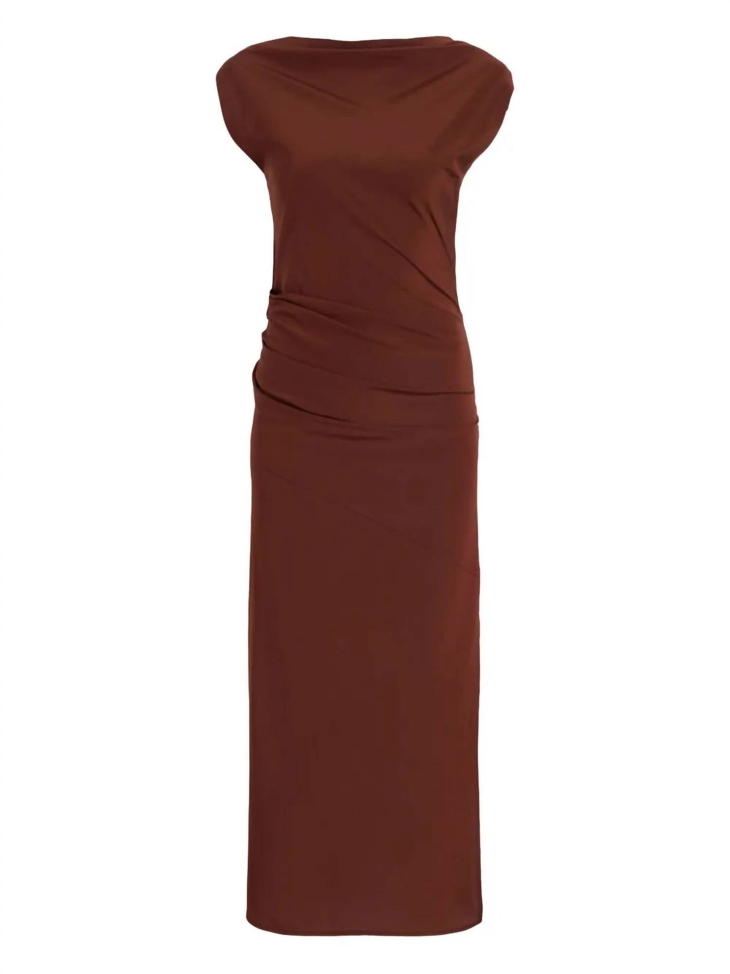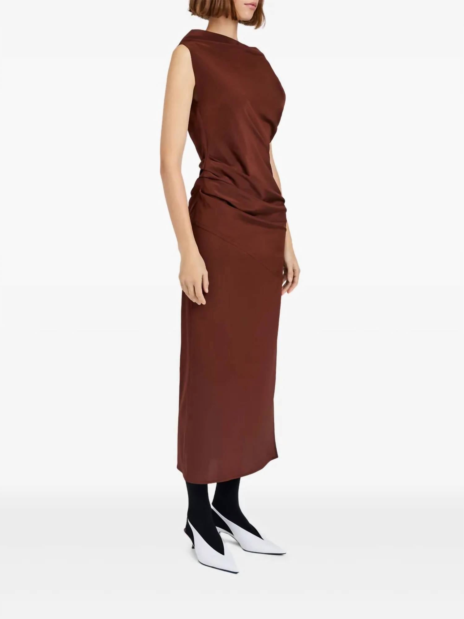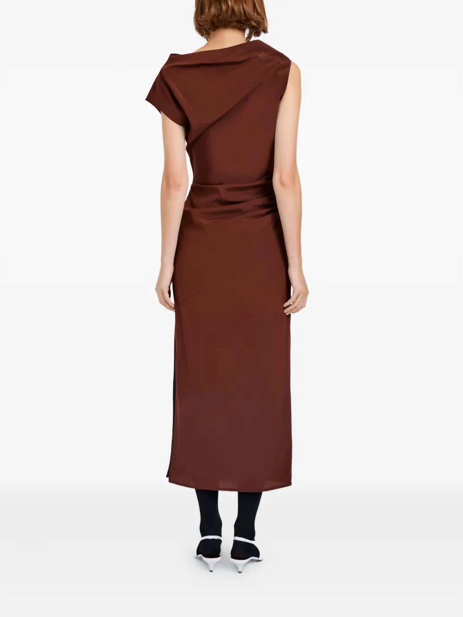 A midi dress so versatile, your options for wearing it are endless. Elevate your evening ensemble with the Tasa Midi Dress by Proenza Schouler, a chic option for any spring event. This mahogany sheath dress offers a cap sleeve design, crafted from a blend of 70% triacetate and 30% polyester, elegantly merging comfort with sophistication. Featuring an off-the-shoulder neckline and ankle-grazing hem, it embodies quiet luxury with a sleek silhouette. Imported and designed for women, it requires dry cleaning to maintain its pristine condition.
