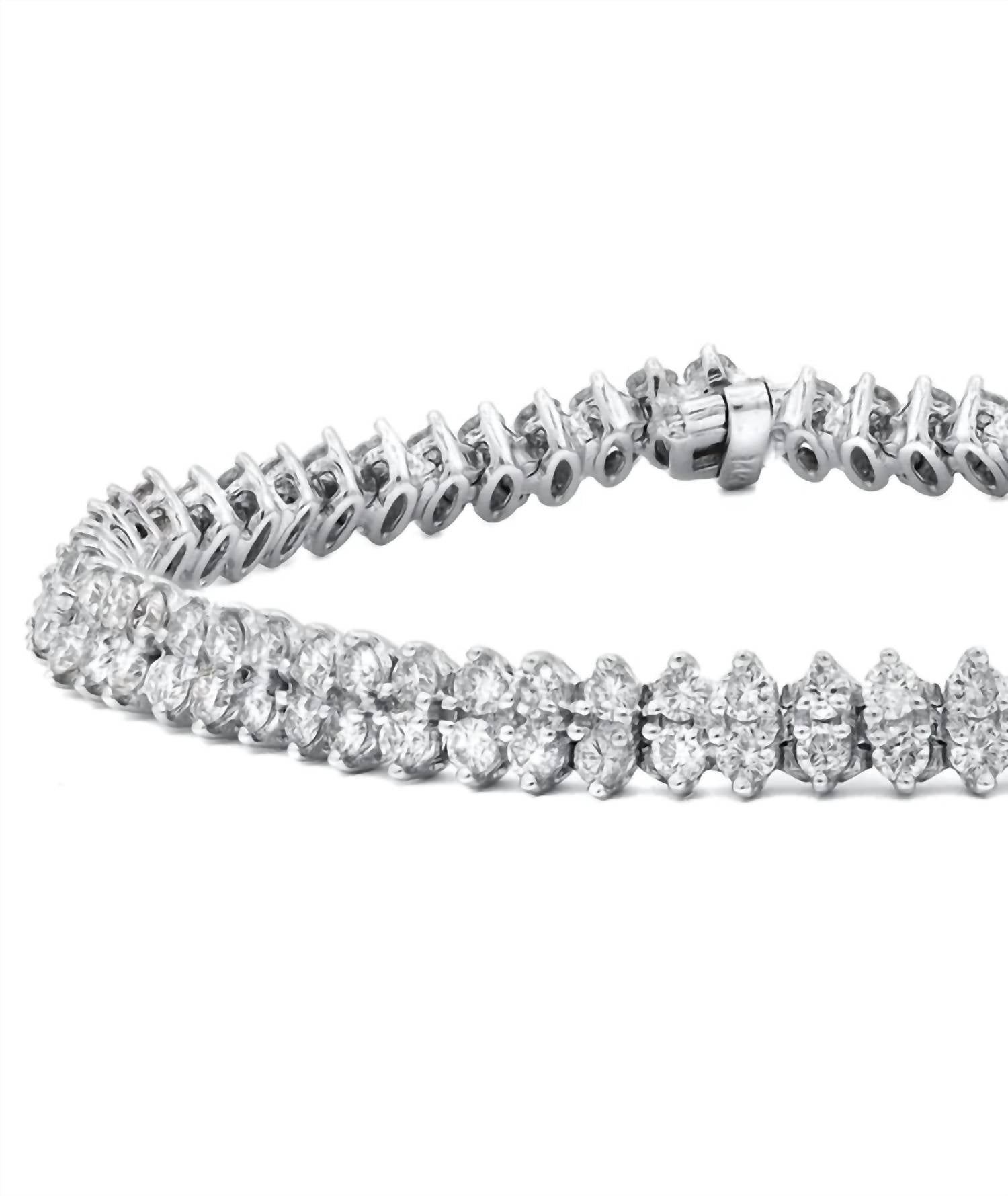 Stacked or solo - you can't go wrong with this bracelet. Enhance your elegance with the Two Row Tennis Diamond Bracelet by Diana M Jewels, meticulously crafted for sophisticated tastes. This stunning bracelet is made from 14k white gold and boasts 5.00 carats of natural round brilliant diamonds in a two-row prong setting. Closure: Box clasp. Perfect as an April birthstone, this fine piece showcases the pristine beauty of white diamonds.