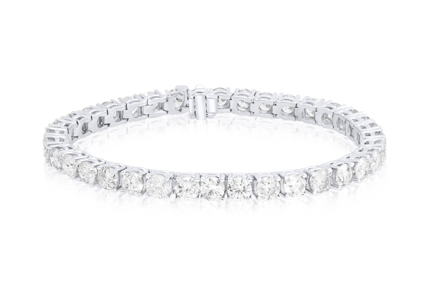 Stacked or solo - you can't go wrong with this bracelet. Elevate your elegance with the 8.60cts Diamond Tennis Bracelet by Diana M Jewels, crafted in shimmering 14k white gold. This exquisite bracelet features a stunning total of 8.60 carats of natural round brilliant diamonds, beautifully set in a secure 4-prong setting. It measures 7.5 inches in length and closes with a classic box clasp. A timeless piece, ideal for those fortunate enough to call diamond their April birthstone.