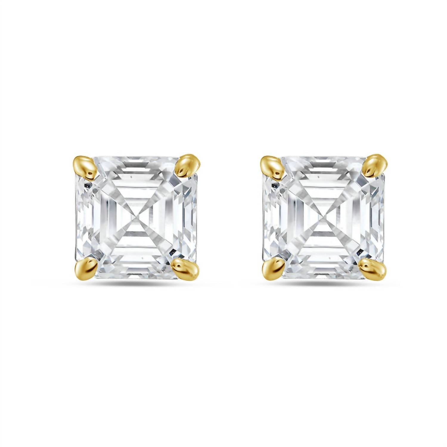 Easy and elegant earrings to complement any outfit. Elevate your elegance with the 12.00 Cts Lab Grown Asscher Cut Stud Earrings by Diana M Jewels. Adorned with lab-grown diamonds possessing an excellent Asscher cut, these earrings boast a DEF color grade and VS clarity. Crafted from 14k Yellow Gold, they feature a secure 4 prong setting and a convenient post clasp. Celebrate April birthdays or any occasion in style with these fine jewelry pieces.