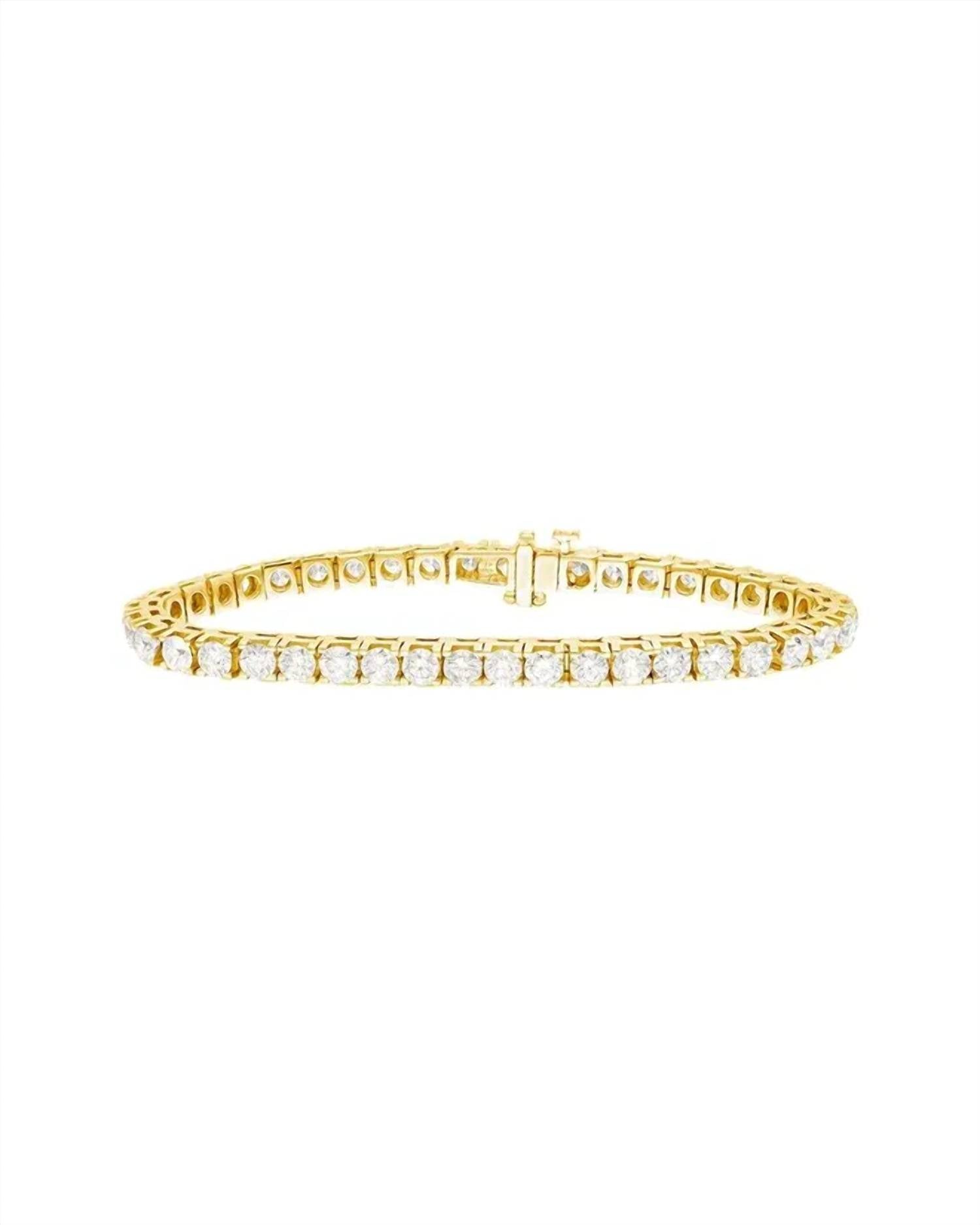 This bracelet will be your favorite go-to piece of the season. Introducing the 6.40 Cts Diamond Tennis Bracelet by Diana M Jewels, a stunning piece crafted in 14k yellow gold. This fine bracelet showcases 46 natural round brilliant cut diamonds, totaling 6.40 carats, with a G-H color grade and SI1 clarity. The prong setting enhances the brilliance of the stones, while the secure box clasp provides a seamless finish. Measuring approximately 7 inches, this elegant piece is perfect for those born in April, signifying their birthstone, the diamond.