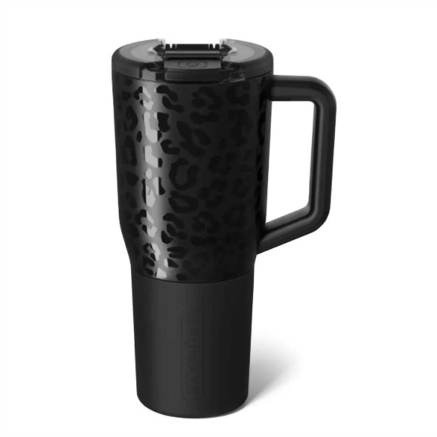 Introducing the Müv Travel Mug - 35oz by BRUMATE, your ultimate companion in Onyx Leopard for beverages on the go. This feature-packed coffee mug boasts a 100% leakproof BevLock™ lid, OctaLock™ thread system for easy lid removal, and MagFlip™ technology to keep your lid open while you sip. Equipped with a scratch-resistant comfort grip handle, a cup holder-friendly base, and a removable, color-matched silicone sleeve, it ensures durability. With BevGuard™ technology, enjoy your drinks hot for over 6 hours or cold for 24+ hours.