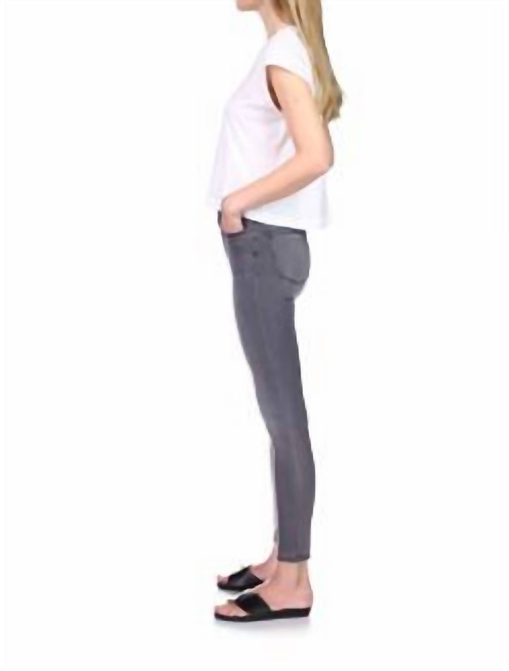 Everyone needs a good pair of skinny jeans and this is a style you'll keep reaching for no matter the season. DRIZZLE IS A CLEAN, MID-GREY WASH WITH WIDE WHISKERING AND SANDING DOWN THE THIGHS.