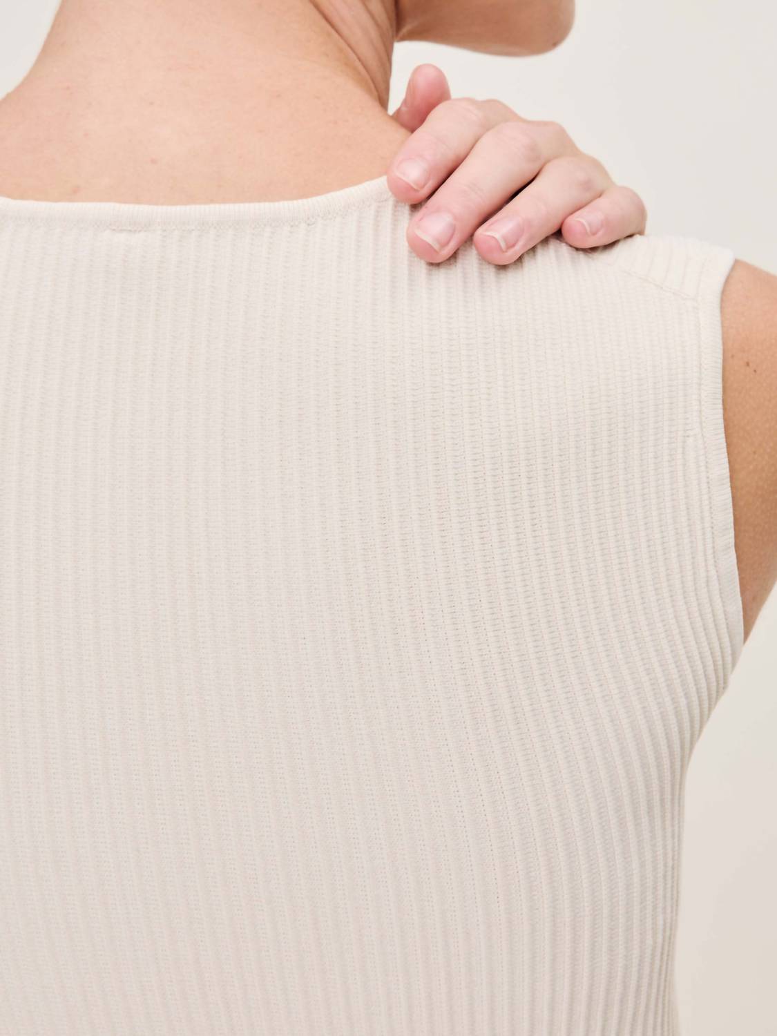 The perfect tank top for those warmer weather seasons. Introducing the Instasculpt Rib Square Neck Top by DL1961, a wardrobe essential for minimalist style in ecru. This sleeveless top features a square neck and is crafted from a slimming rib knit made from 71% polyester and 29% spandex. Closure is a convenient pull-on style, and it is perfect for versatile occasions from day to night. Care instructions advise machine washing and laying flat to dry.