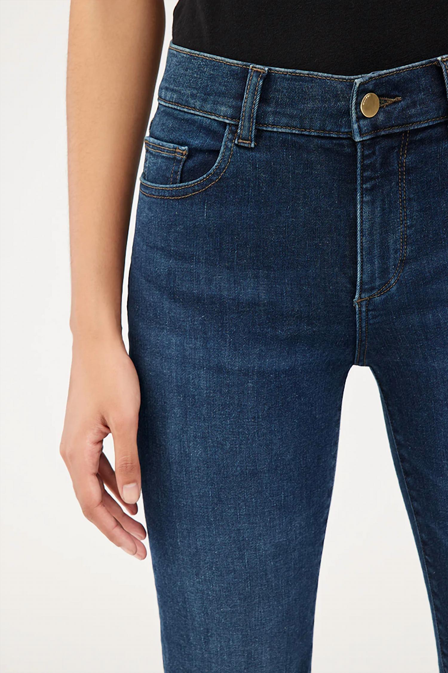 This classic straight leg jean has a perfect fit and goes with just about everything. Introducing the DL1961 Women's Mara Mid-rise Straight Leg Jean in the sophisticated India Ink color, perfect for your streetwear style this spring. These jeans feature a mid-rise with a 9" rise and a 31" inseam, offering a flattering slim fit with a 13.5" leg opening. Made from DL Performance denim, they combine high-retention stretch technology with 93% cotton, 6% polyester, and 1% lycra for an authentic feel and fit that moves with you. Closure is secured with a button and these jeans are easy to care for with machine wash instructions.