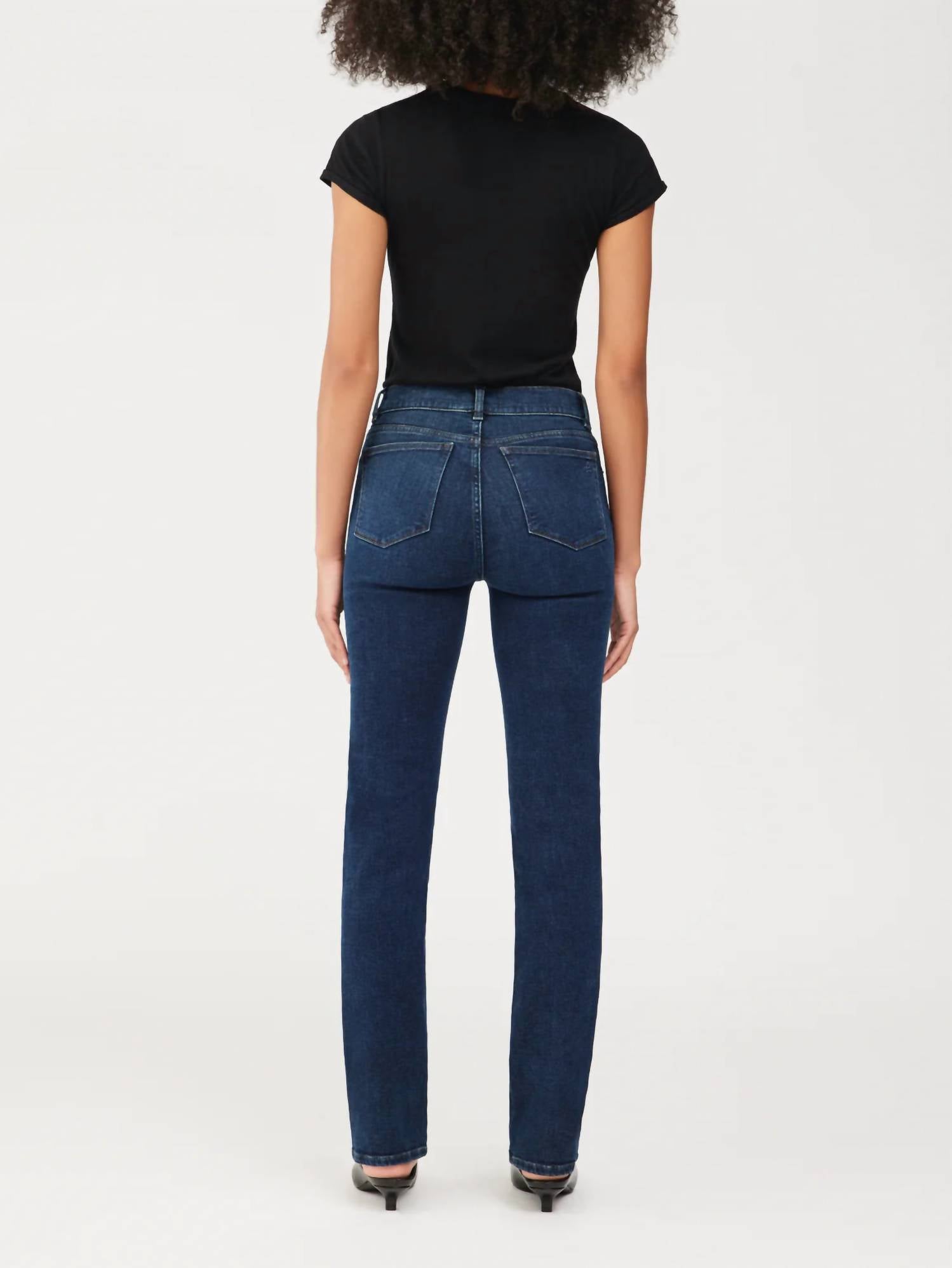 Pair these straight leg jeans with flats, sandals or even heels! You can't go wrong. Elevate your wardrobe with the Mara Straight Leg Midrise Instasculpt Jean by DL1961, designed for a flattering slim fit in a versatile straight leg style. These jeans are crafted from 93% Cotton, 6% Polyester, 1% Lycra Spandex that utilizes Instasculpt technology to smooth, sculpt, and conform to your body, offering a perfect fit in a dark wash India Ink color. The ankle-length cut with a mid-rise 9" waist rise and 27" inseam pairs beautifully with the subtle dry processing, brushed gold hardware, and khaki stitching. Closure is secured with a button, and for care, simply machine wash and tumble dry as needed.