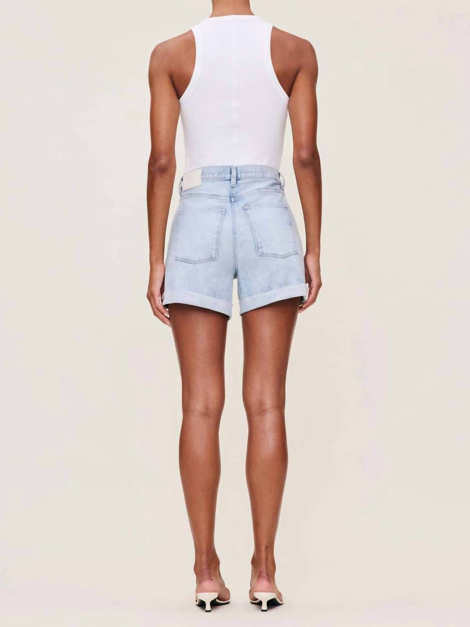 Jean shorts so versatile, you can literally wear them with anything. Elevate your summer style with the DL1961 Women's Zoie Cuffed Short in Positano, a vintage-inspired wardrobe staple. Made from durable denim, these shorts feature a flattering contoured waistband, solid pattern, and practical pockets. With a button closure, the shorts have dimensions of an 11.12” rise, 4.5” inseam, and 23.5” leg opening. Care instructions include machine washing.