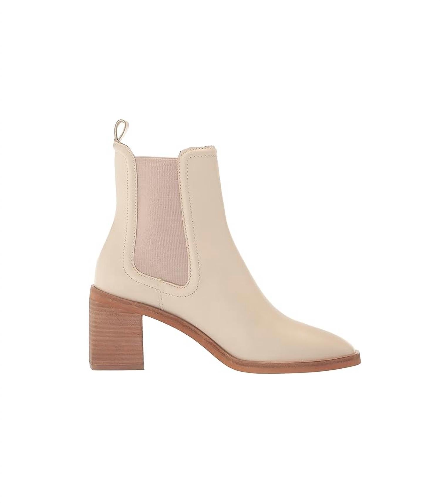 Say hello to the perfect, most versatile boot. The ankle height makes this style easily transition from day to night. Wear them with your favorite skinny jeans and tee for a more laid back look, or pair them with your favorite mini dress and jacket for a night out on the town. Step out in style with the Women's Iliana Leather Boot by Dolce Vita, featuring a chic ivory hue and pointed toe for a sleek finish. These ankle boots offer a comfortable 2-3/4" block heel and a practical pull-on design with dual side gore, complete with a pull tab at the heel for easy wear. Crafted with a leather upper, linen and manmade lining, and a manmade sole, these boots combine durability with style. Imported for premium quality, they make a versatile addition to any wardrobe.