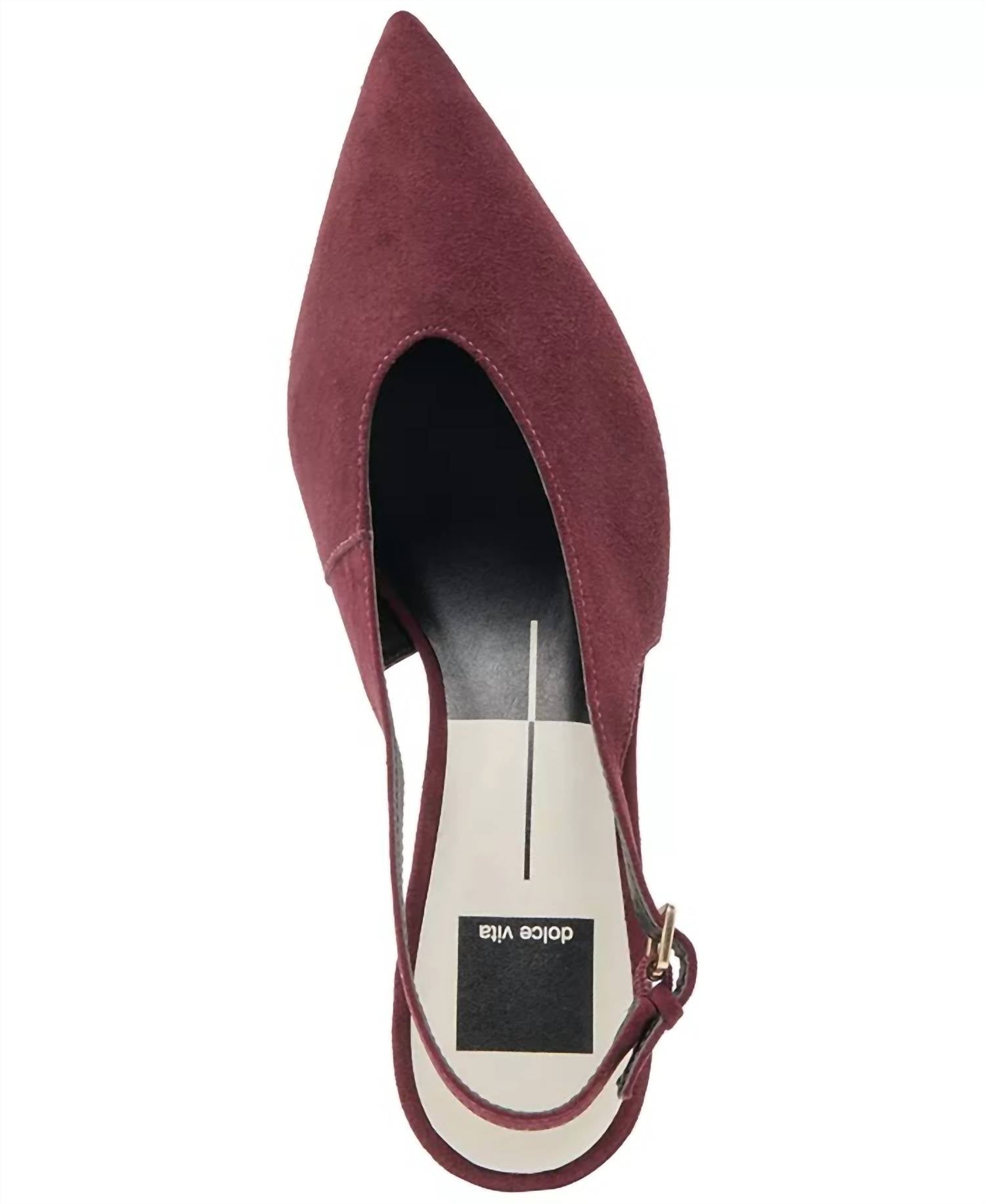 Don't be deceived, these heels are comfy as can be. Step into elegance with the Women's Alenna Heels by Dolce Vita, featuring a minimalist design in stylish plum suede. These heels are crafted with a suede upper, complemented by a synthetic lining, sock, and outsole. The pointed toe and V-shaped cutout enhance its sophisticated look, while the 1.7" kitten heel offers a comfortable lift. Ideal for office wear or cocktail parties, these imported heels blend sleek style with ease.