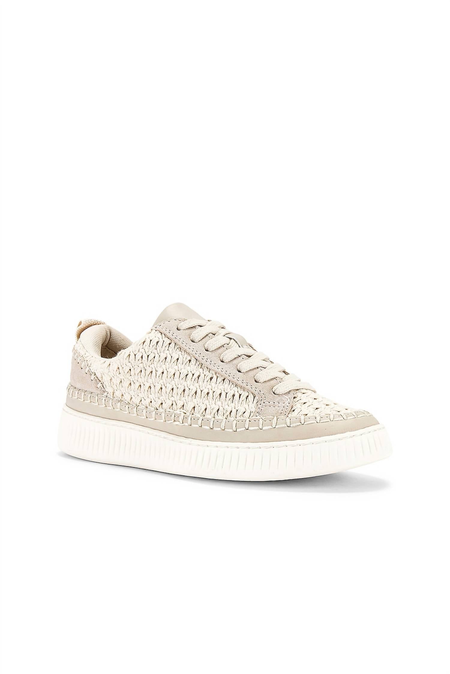 Cute, functional, and comfortable. These sneakers check all the boxes. Step into comfort and style with the Women's Nicona Sneaker by Dolce Vita, the elevated choice for your on-the-go lifestyle. Crafted with a blended upper featuring woven knit, synthetic, and suede materials, these sneakers offer a perfect balance of breathability and durability. Designed with a flat heel and round toe, they ensure ease with a sleek minimalist appeal. Imported and featuring a rubber outsole and textile lining, Nicona is your ideal travel companion this spring.