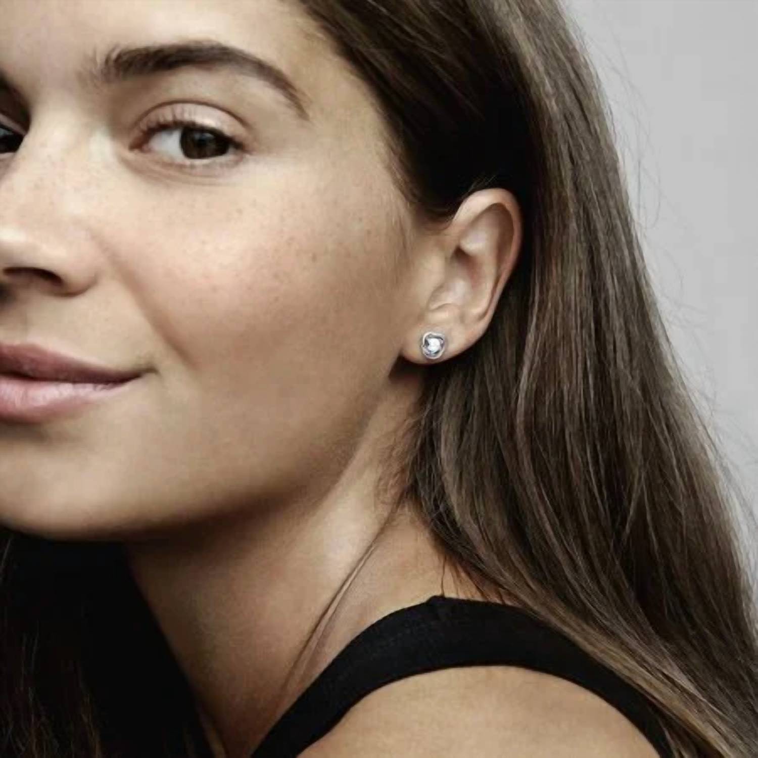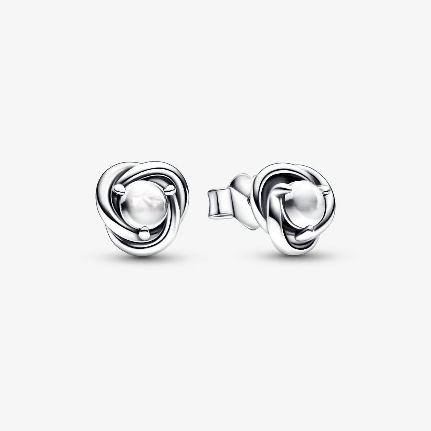 eye-catching earrings for every occasion. Enhance your jewelry collection with the Women's April Birthstone Eternity Circle Stud Earrings by Pandora. Crafted from sterling silver, these elegant earrings are designed in the form of an infinity braid, featuring a centrally placed cabochon-cut clear cubic zirconia. They symbolize eternity, making them a meaningful and radiant addition to any outfit. Size: One size, compatible with Pandora Moments.