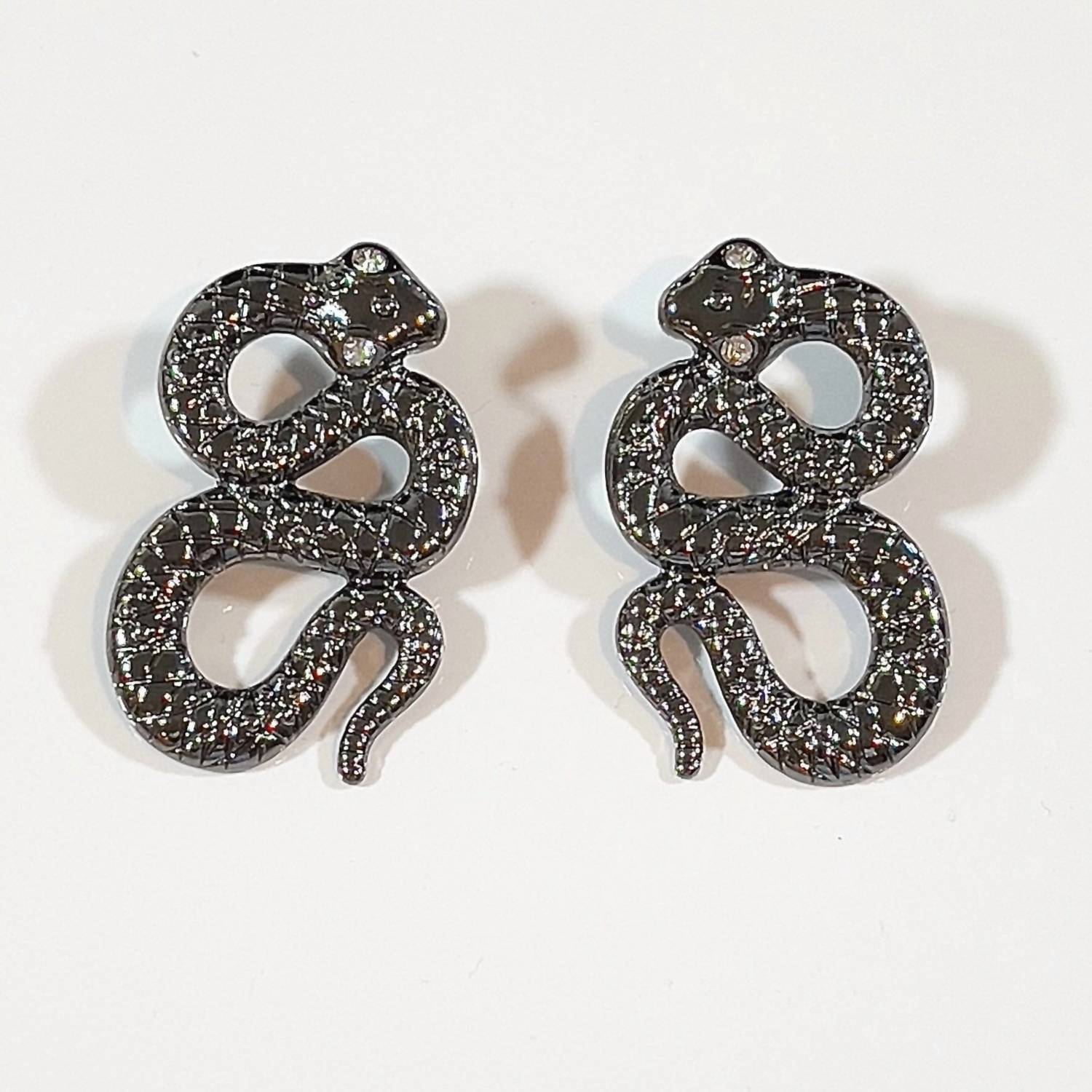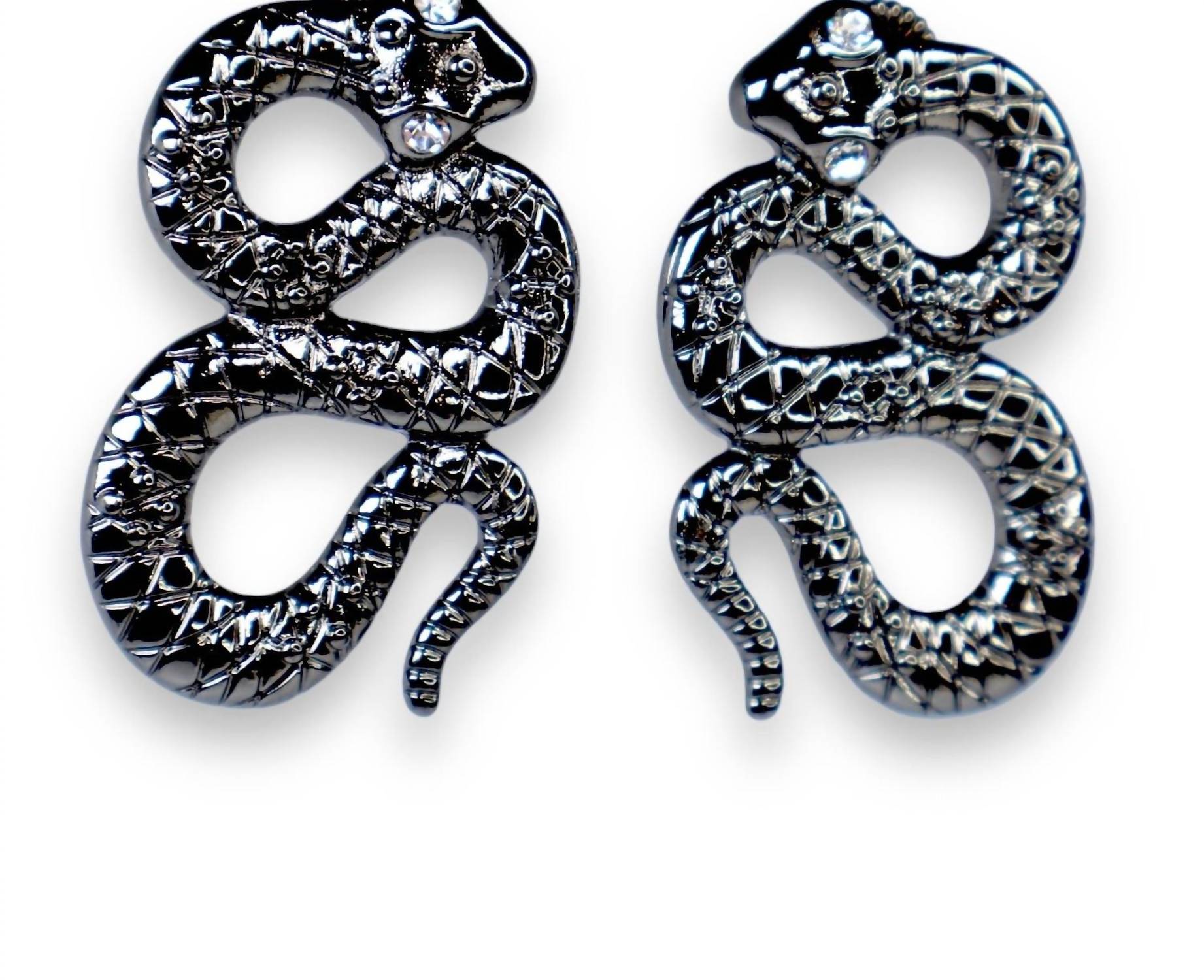 Easy and elegant earrings to complement any outfit. Make a striking impression with the Women's Python Earrings by Jagged Halo Jewelry, expertly designed in 18k white gold filled for a luxurious finish. Measuring 2 inches in length, these earrings feature intricately detailed serpentine designs with stainless steel posts and captivating crystal accents on the eyes, adding a touch of elegance. Crafted to symbolize transformation and strength, they artfully combine a bold aesthetic with fine jewelry craftsmanship. Care: Avoid wearing them in the shower, ocean, or pool, and apply perfumes or lotions before putting them on to maintain their radiant charm.