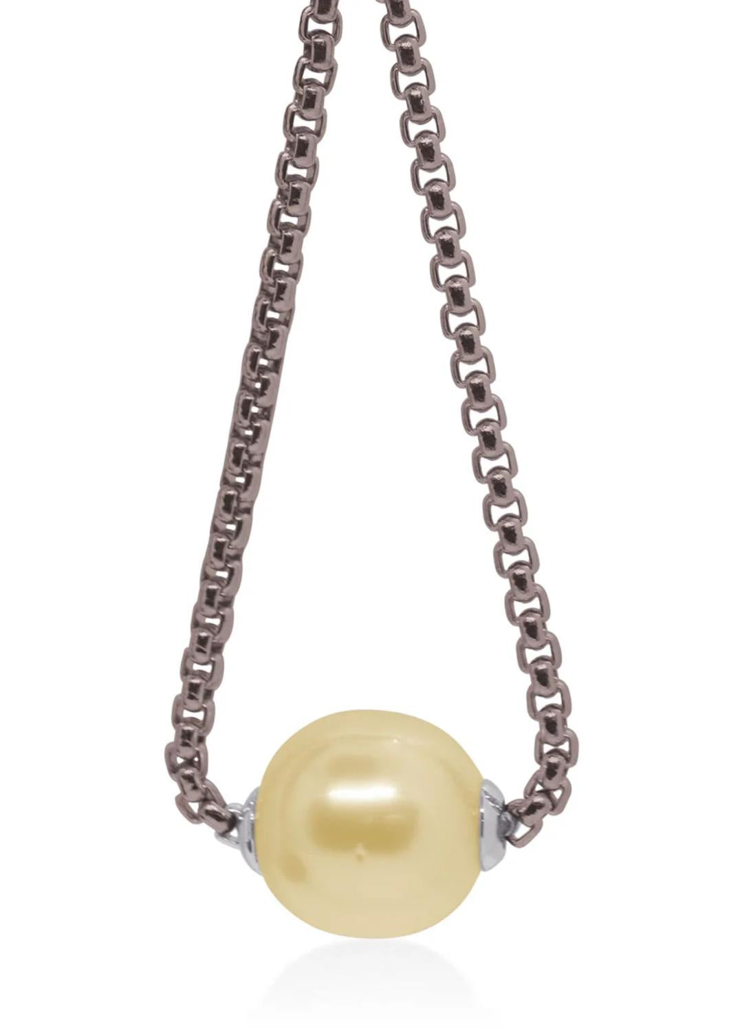 Easy and elegant earrings to complement any outfit. Indulge in the refined elegance of the South Sea Pearl Chain Earring by ALOR, a chocolate-hued masterpiece that captivates with its sophistication. This fine earring features a teardrop-shaped stainless steel chain adorned with an 11-12mm South Sea cultured pearl, complemented by a 14kt gold post and stainless steel butterfly back. With a total length of 3 inches, these exquisite earrings bring a touch of luxury to any ensemble. Embrace the allure of imported craftsmanship and elevate your style effortlessly.