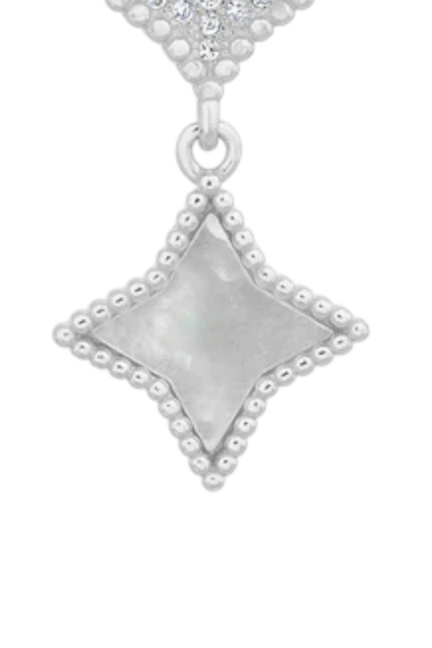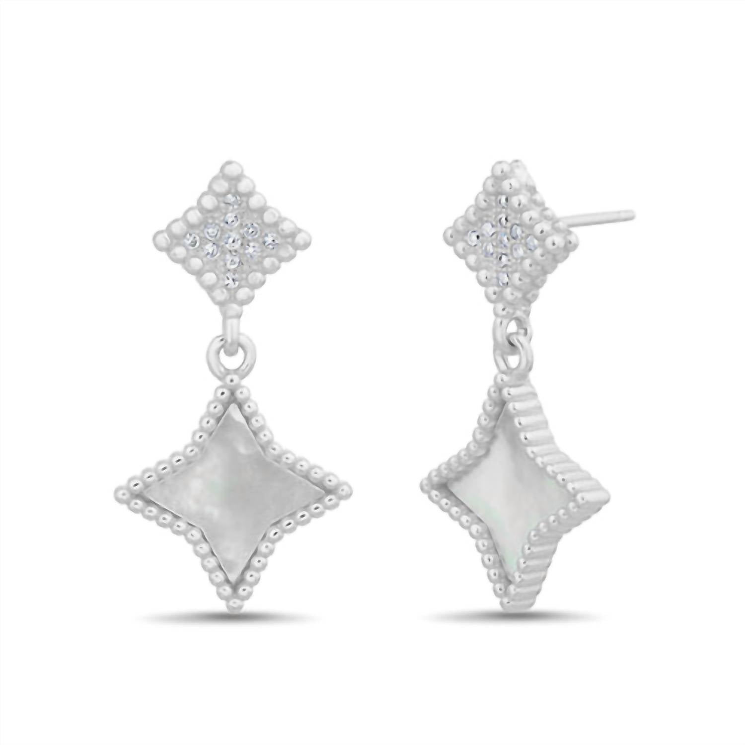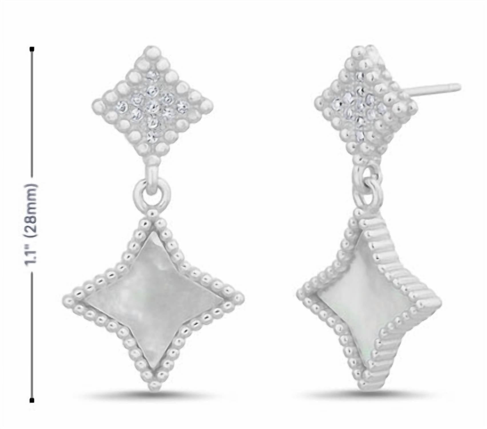 Classic earrings that will take you from season to season. Elevate your jewelry collection with the Cubic Zirconia Enamel Diamond Shape Dangling Earrings from Allyanna Gifts. These sophisticated earrings are crafted from sterling silver and adorned with a captivating cubic zirconia inlay. The elegant design is perfect for adding a touch of luxury to any outfit. Indulge in fine jewelry that balances exquisite craftsmanship with timeless style.